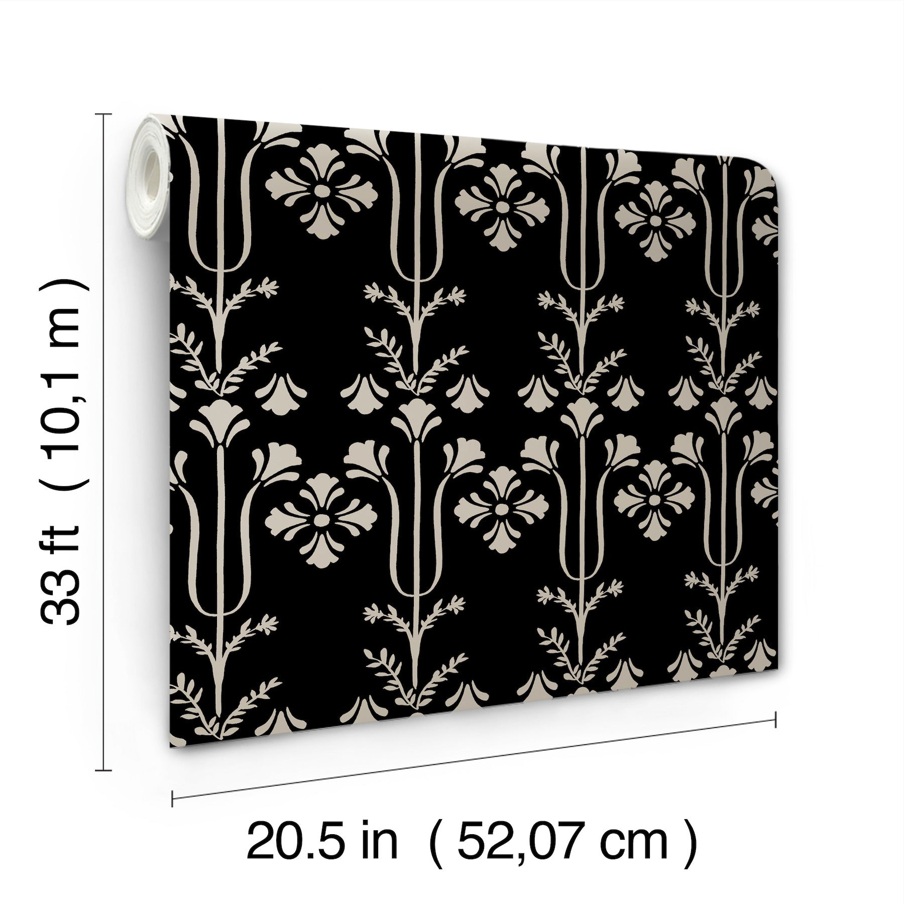 Use:A nostalgic floral pattern featuring charming block print details reminiscent of an antique crest. Featuring beige block printing against inky black. This Lydia Wallpaper measures approximately 20.5 inches wide by 33 feet long, measuring approximately 56.4 square feet per roll. This collection of timeless wallcoverings is layered with warmth and charm, and effortlessly blends nostalgic patterns with modern designs.?¨This assortment has a little bit of everything?simple stripes, subtle plaids, vintage motifs, and bold florals.