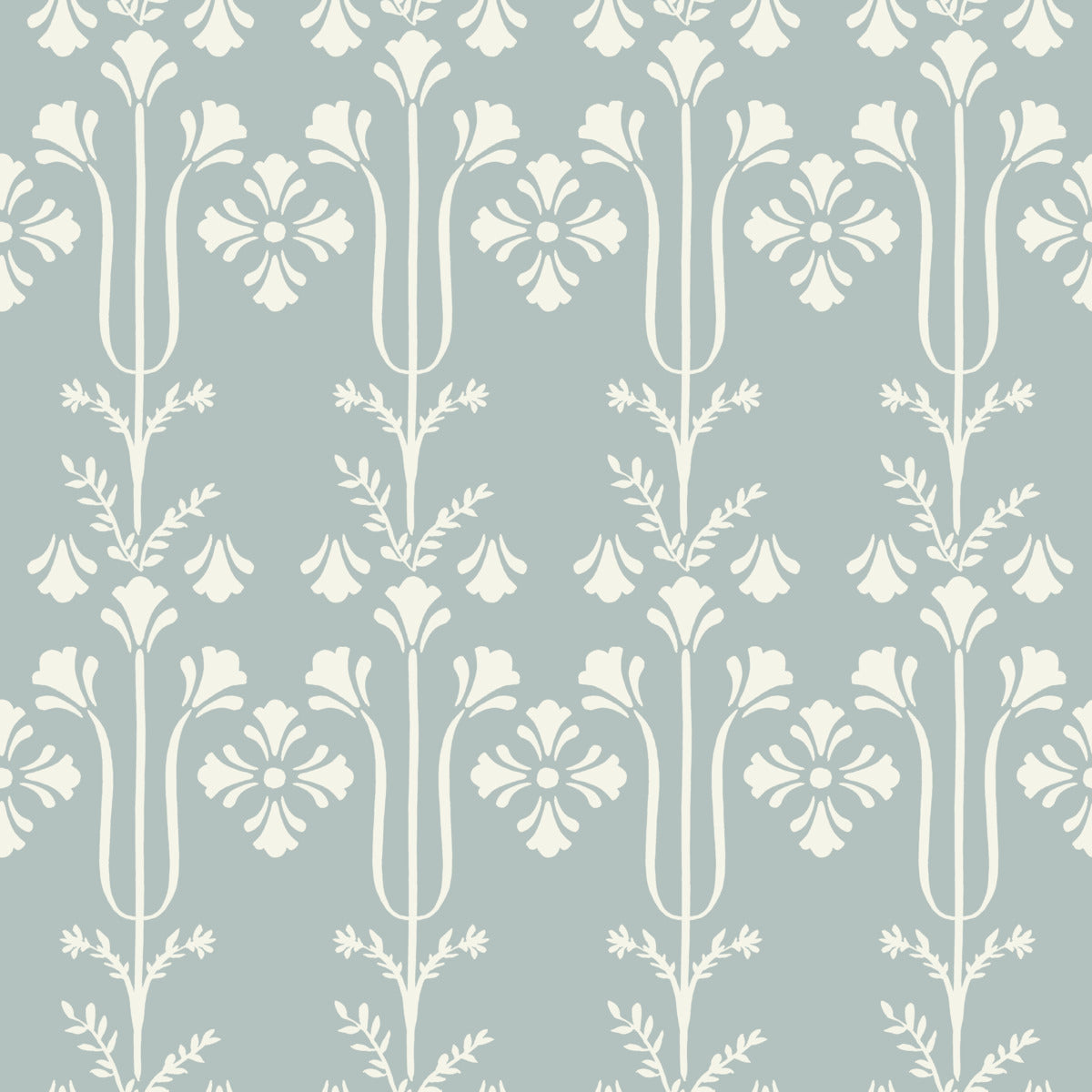 Use:A nostalgic floral pattern featuring charming block print details reminiscent of an antique crest. Featuring white block printing against pale blue. This Lydia Wallpaper measures approximately 20.5 inches wide by 33 feet long, measuring approximately 56.4 square feet per roll. This collection of timeless wallcoverings is layered with warmth and charm, and effortlessly blends nostalgic patterns with modern designs.s assortment has a little bit of everything,simple stripes, subtle plaids, vintage motifs, and bold florals.