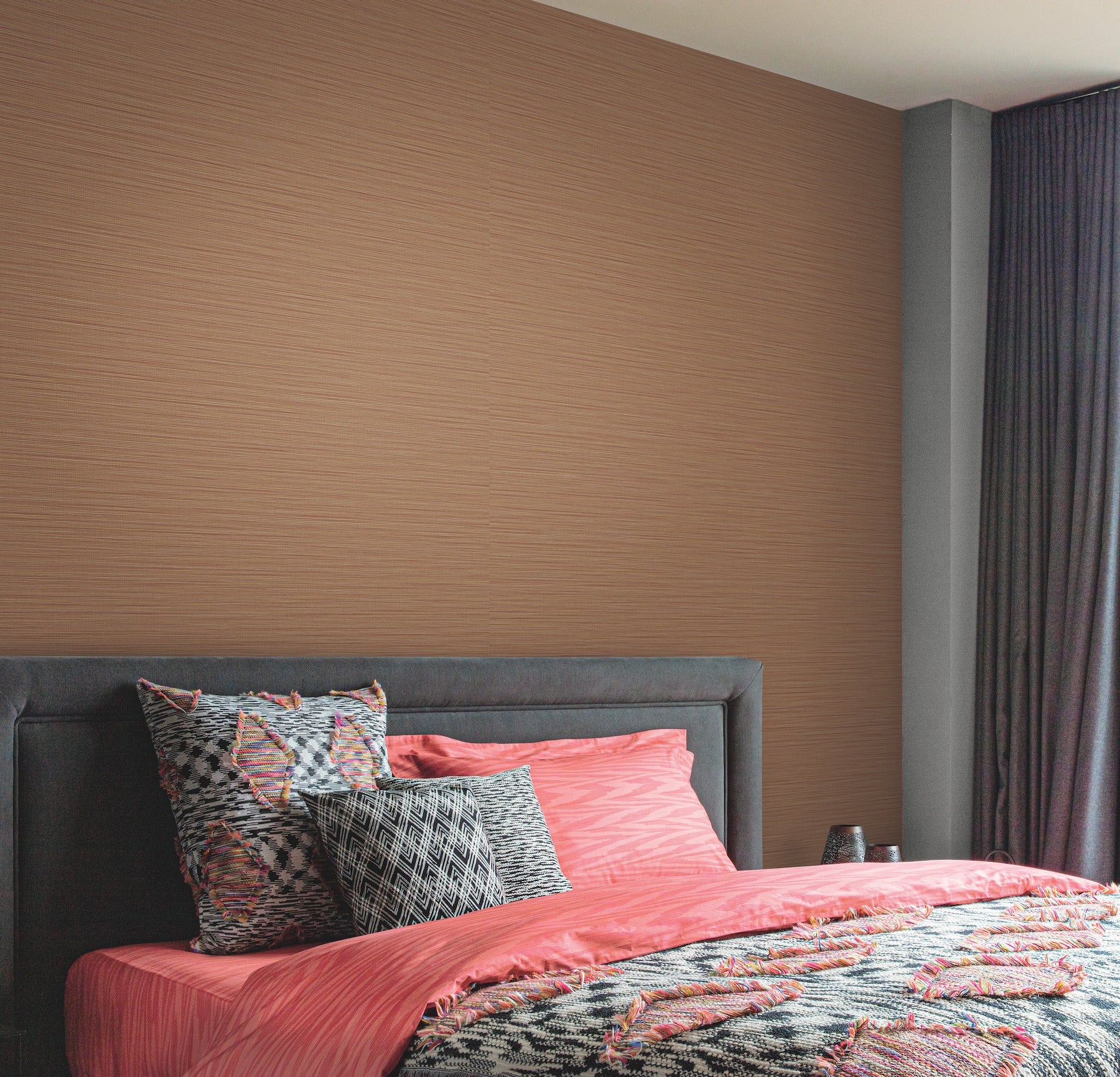 Use:The subtle texture and shimmer of natural grasscloth make faux pattern Cannete the perfect companion to vivid designer style. This Cannete Wallpaper measures approximately 39.3 inches wide by 33 feet long, covering About 108.1 square feet per roll. Durable and easy to remove from primed walls, this friendly to hang SOLD BY THE YARD Unpasted nonwoven designer wallpaper is created with a special blend of fibers, making it both washable and tear resistant.