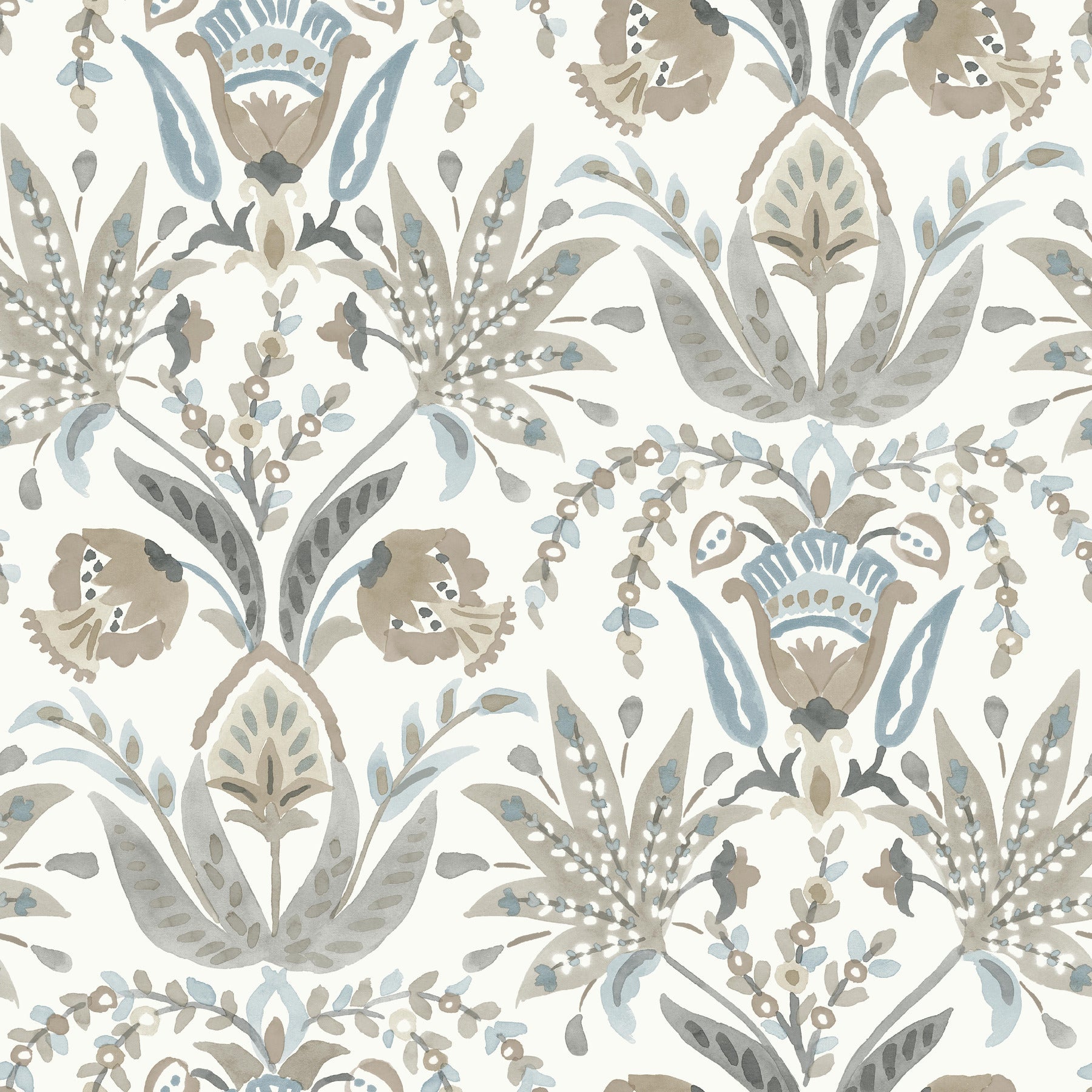 York Wallcoverings Inspired by Color Seaside Jacobean Taupe and Blue Wallpaper Florals and Flowers Whites and Off-Whites - MN1915