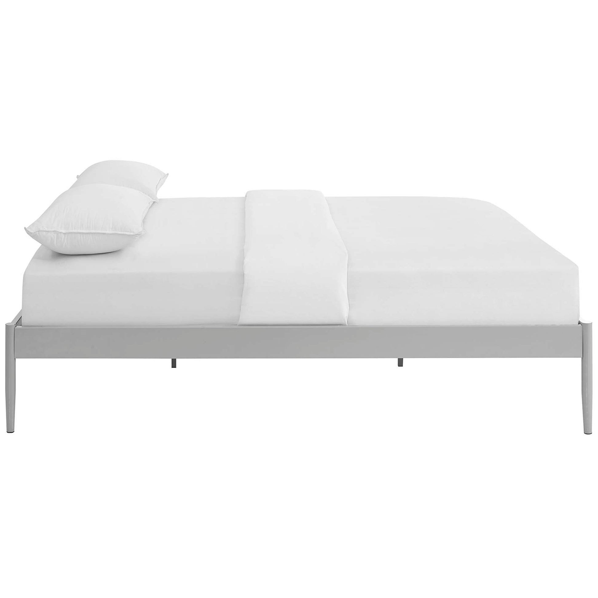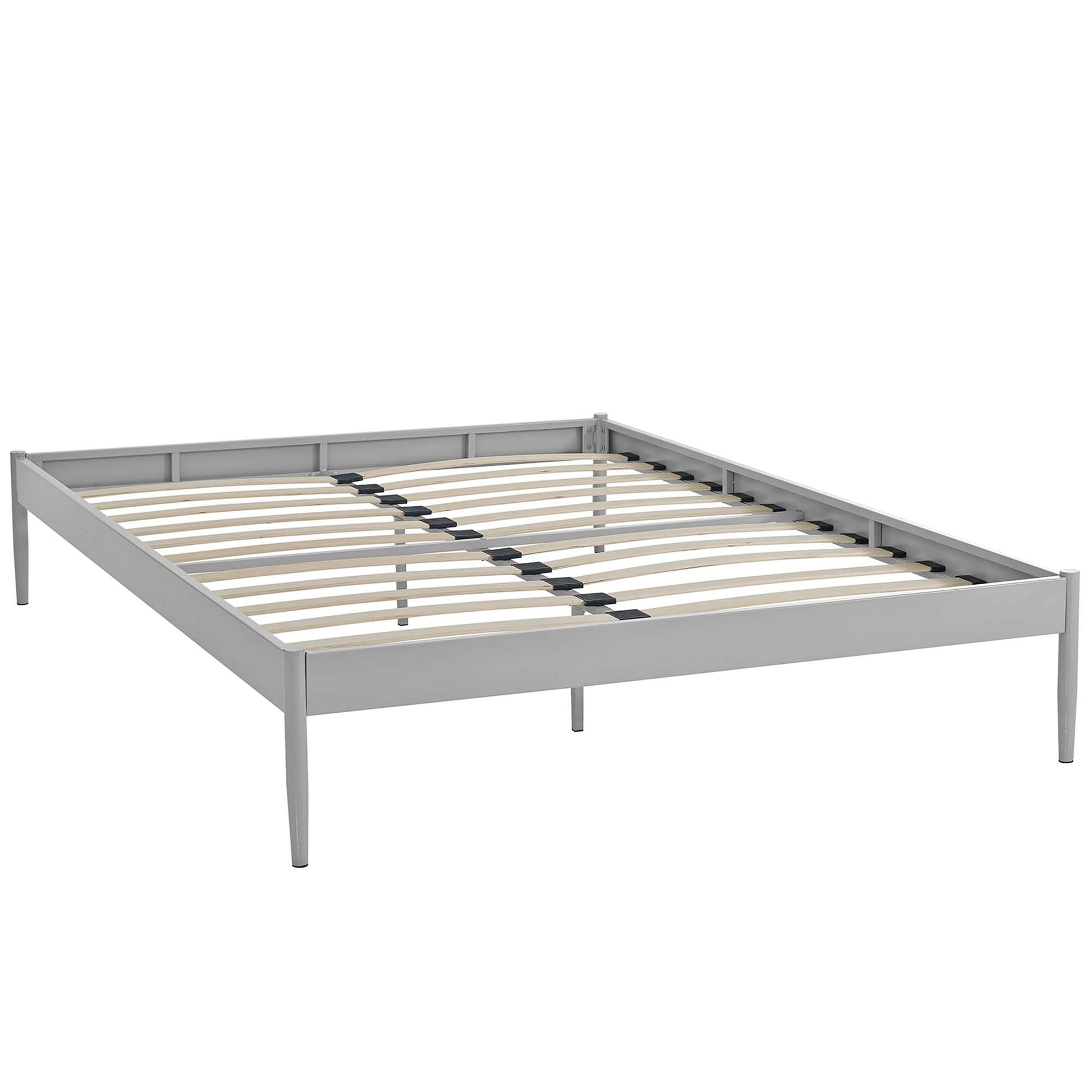 Use:Resolve bedroom conundrums with the Elsie Bed Frame. With a slatted birchwood support system and sturdy steel frame, Elsie eliminates the need for a boxspring and firmly supports the various mattress types on the market such as memory foam, spring, latex, and hybrid. Featuring tapered dowel legs with non-marking foot caps, and a reinforced center beam with extra support legs, Elsie is a well-made, durable bed built to last. Elsie holds a weight capacity of up to 1300 lbs and showcases a sleek, minimalist design perfect for the modern home. Mattress Not Included.,Modern Platform Bed Frame