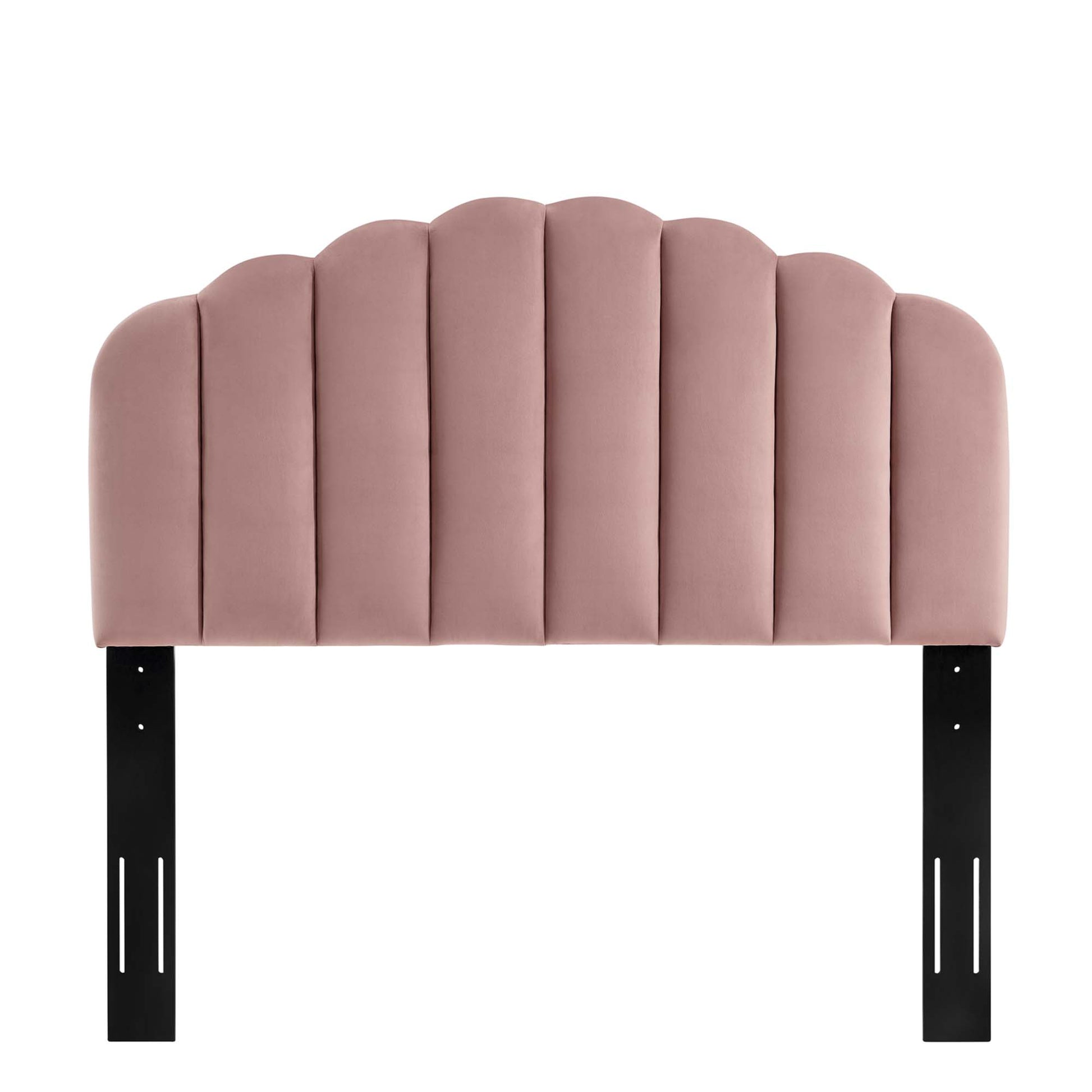 Use:Claim the subtle elegance of vintage glamour with the Veronique Channel Tufted Scalloped Performance Velvet Upholstered Full/Queen Headboard. Dense foam padding and stain-resistant performance velvet upholstery create a luxurious surface of repose when reclining, reading, or conversing in bed. The Veronique Headboard for full or queen beds has vertical channel tufting details that combine with a scalloped edge to present a timeless elegance that enhances your bedroom decor. The Veronique Upholstered Queen/Full Headboard has three height adjustable mounting positions to customize your bedroom needs and solid post legs for support. Fits most full and queen beds