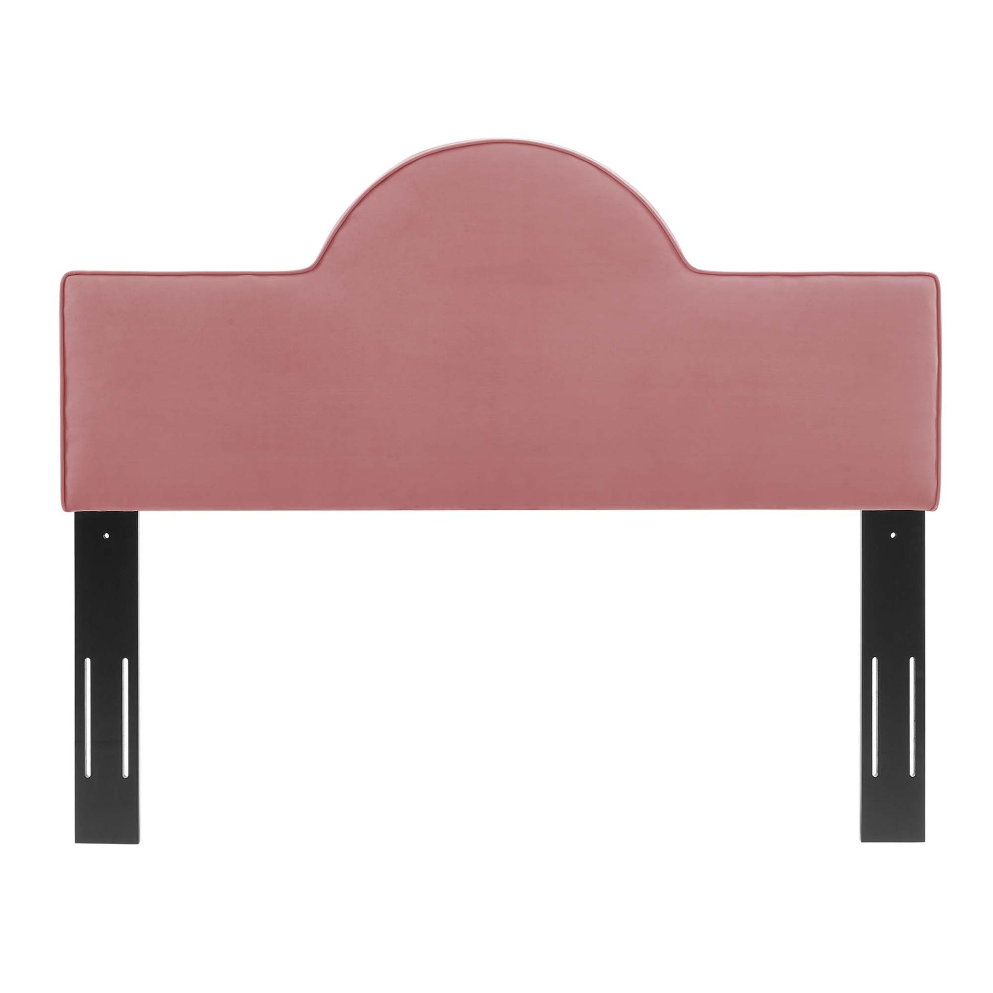 Use:Awaken a master bedroom or guest bedroom with the energizing style of the Dawn Performance Velvet King/California King Headboard. Featuring an arching silhouette reminiscent of the morning sunrise, this upholstered headboard is covered in stain-resistant performance velvet that offers luxe texture and a glam deco look. This king or Cali king size headboard is padded with dense foam creating a soft, supportive place to rest and relax while sitting up in bed. With a sturdy construction and adjustable height, this velvet headboard features five mounting positions to fit almost any Cal king or king bed frame. Assembly required.,Velvet King/California King Headboard
