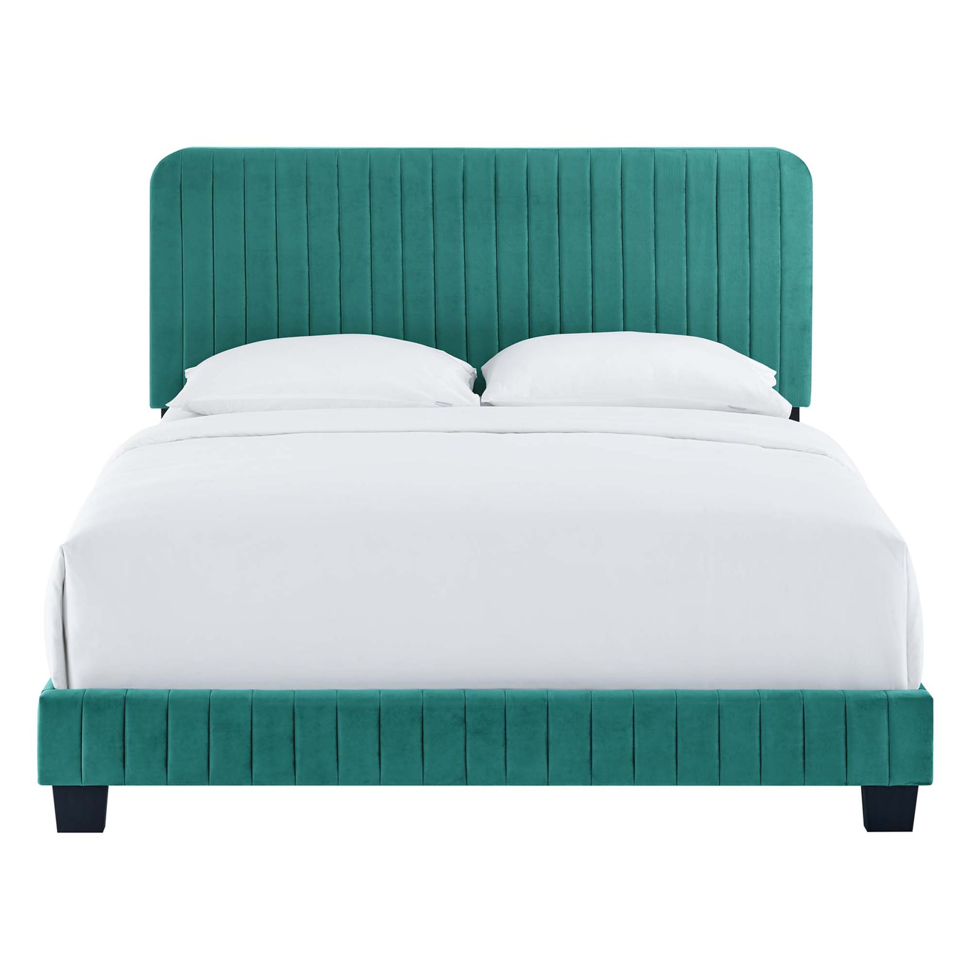Modway Outlet Celine Channel Tufted Performance Velvet Twin Platform Bed by Modway Bedroom Furniture Teal - MOD-6336-TEA