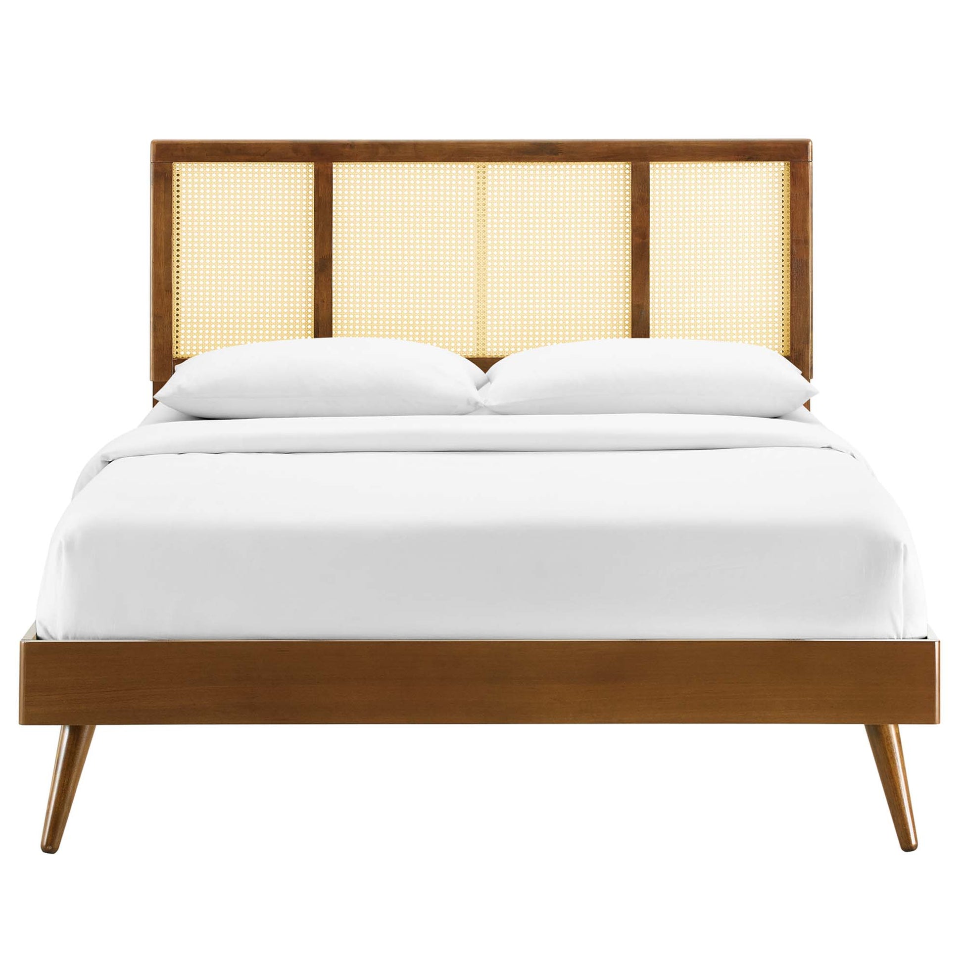 Modway Outlet Kelsea Cane and Wood King Platform Bed With Splayed Legs by Modway Bedroom Furniture Walnut - MOD-6698-WAL