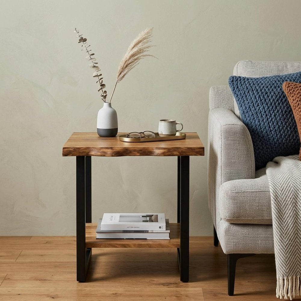 24" Brown And Black Solid Wood And Iron Square Frame End Table With Shelf