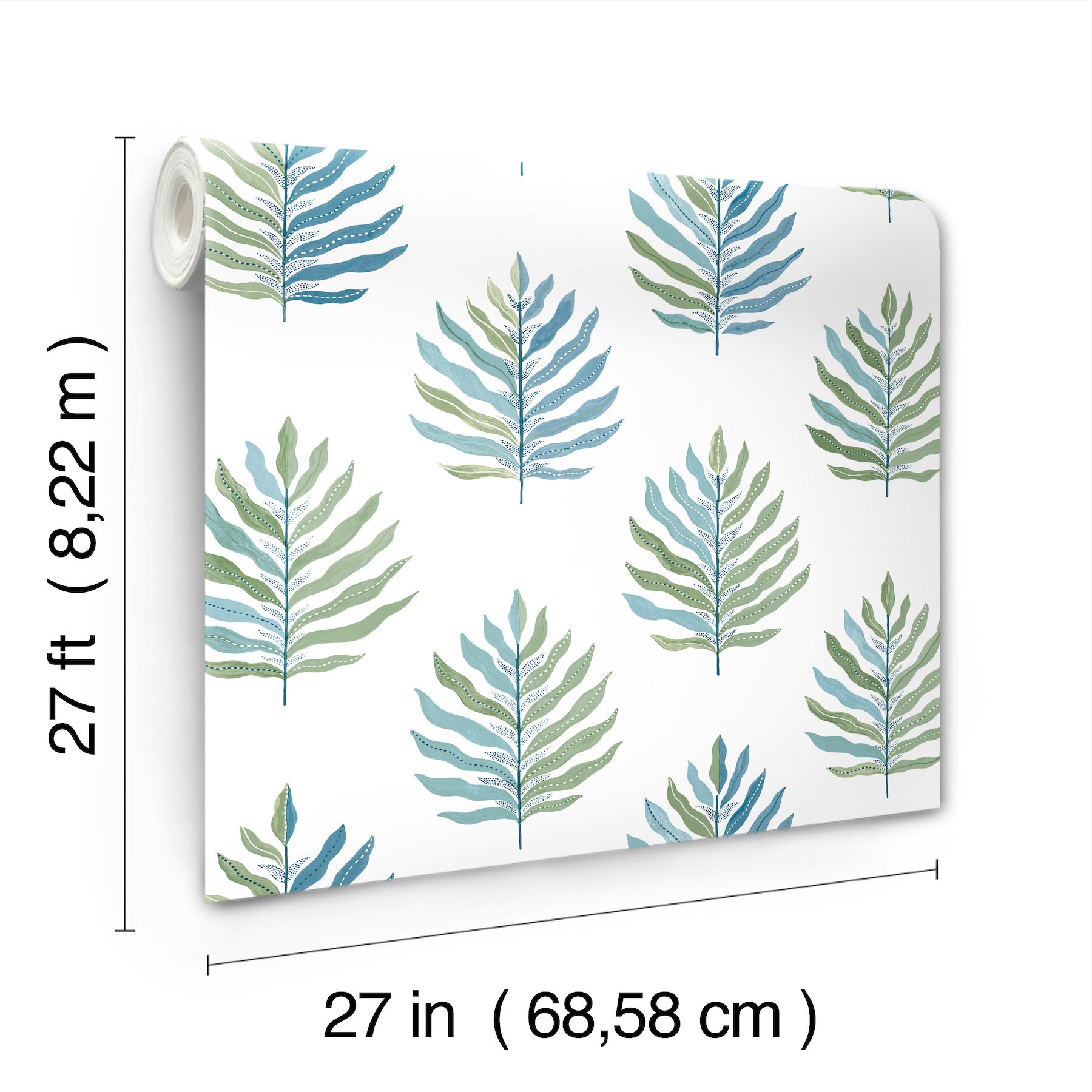 Use:Breezy palm leaves feature a chic, split palette in design Miramar. Seen here bright greens paired against teal and blue. This Miramar Wallpaper measures approximately 27 inches wide by 27 feet long, measuring approximately 60.8 square feet per roll. California?s scenic vistas and luxurious, laid-back lifestyle inspires this sun-drenched collection of organic textures and breezy botanical designs.