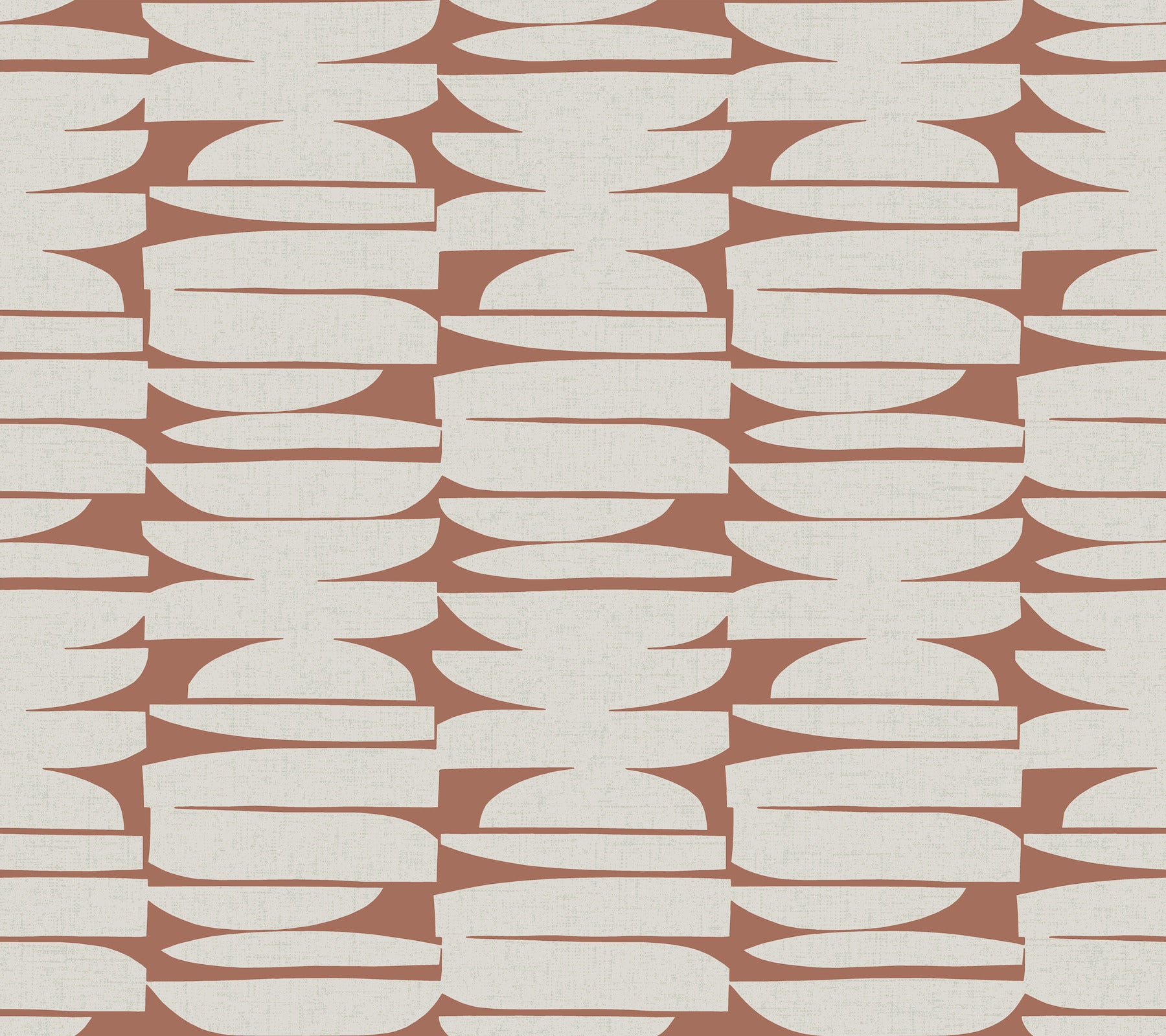 Use:Lovely Libra's stacked shapes offer a perfect balance between geometric and stripes. The terracotta background is decorated with ovoid forms inked in cream with textural detailing. This Lovely Libra Wallpaper measures approximately 27 inches wide by 27 feet long, measuring approximately 60.8 square feet per roll. California?s scenic vistas and luxurious, laid-back lifestyle inspires this sun-drenched collection of organic textures and breezy botanical designs.