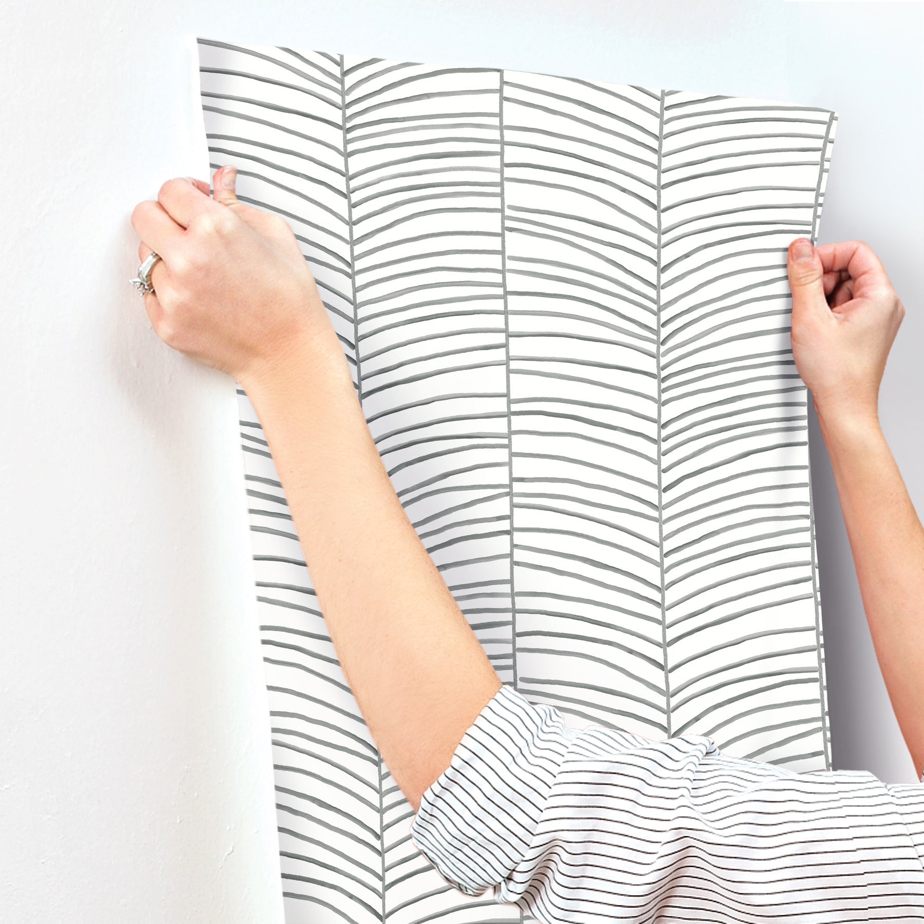 Use:The timeless chevron is given a tropical makeover with a distinct palm leaf design, the veins inked in rich charcoal. This Cascade Palm Chevron Wallpaper measures approximately 27 inches wide by 27 feet long, measuring approximately 60.8 square feet per roll. California?s scenic vistas and luxurious, laid-back lifestyle inspires this sun-drenched collection of organic textures and breezy botanical designs.