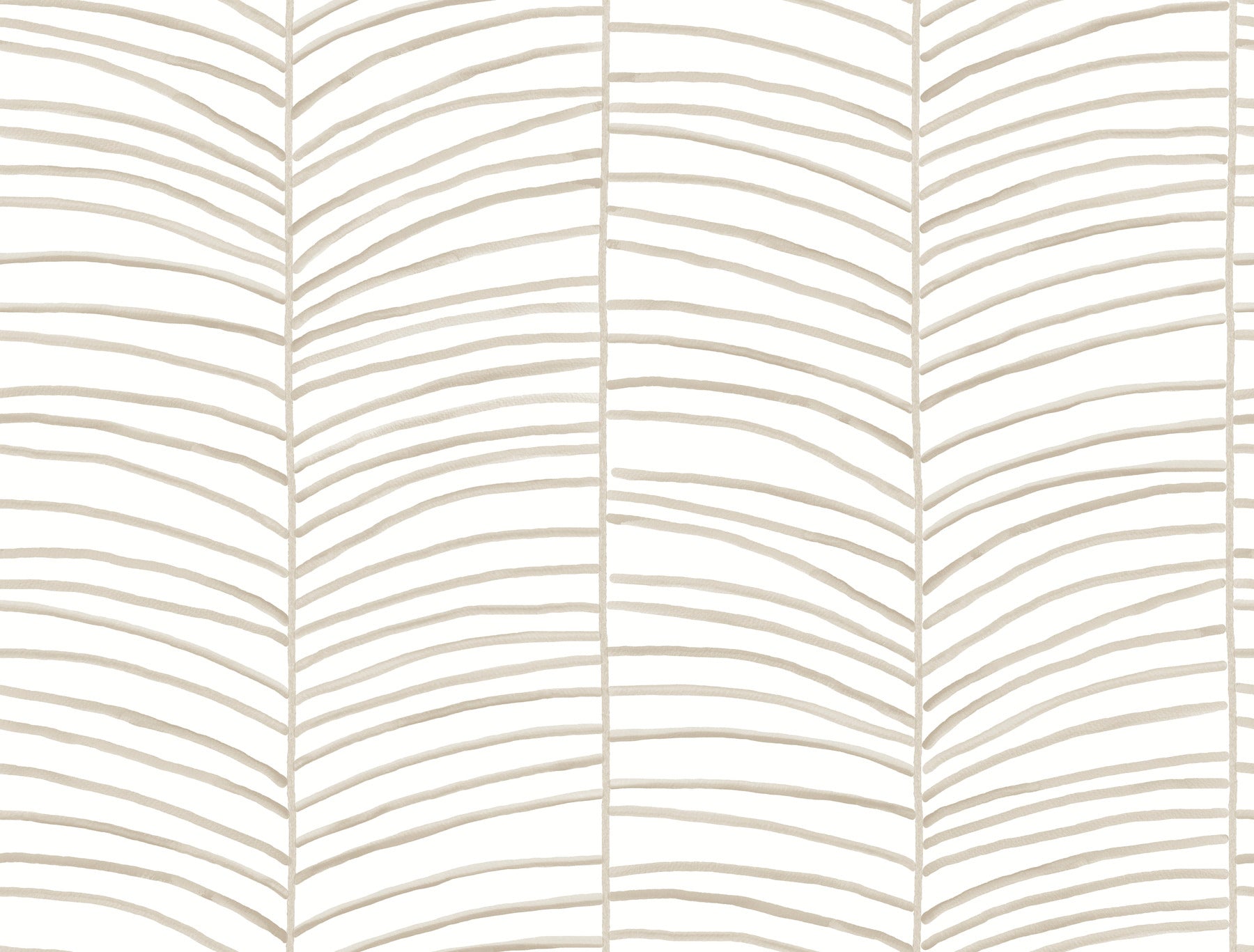 Use:The timeless chevron is given a tropical makeover with a distinct palm leaf design, the veins inked in sandy taupe. This Cascade Palm Chevron Wallpaper measures approximately 27 inches wide by 27 feet long, measuring approximately 60.8 square feet per roll. California?s scenic vistas and luxurious, laid-back lifestyle inspires this sun-drenched collection of organic textures and breezy botanical designs.