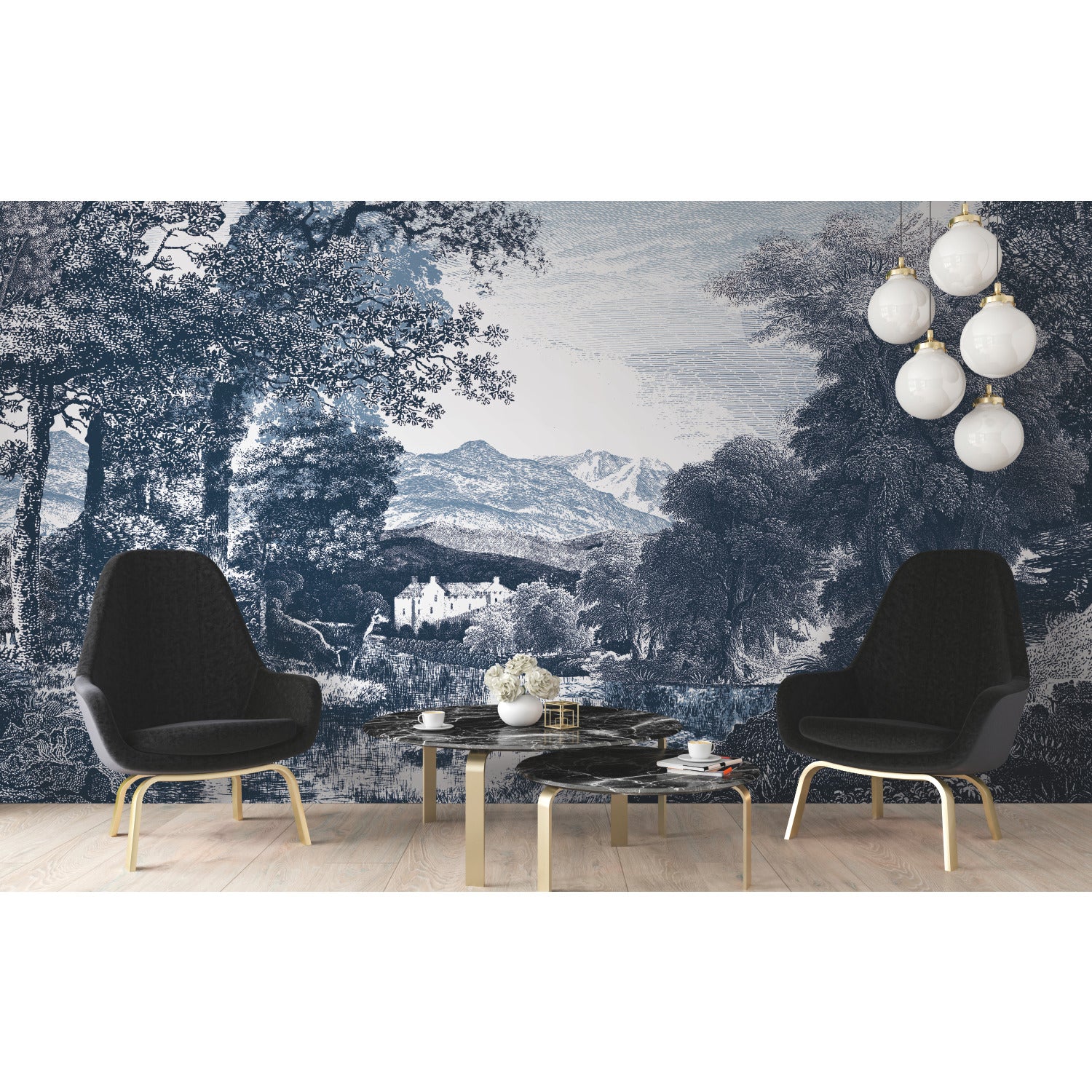 York Wallcoverings Mural Resource Library Provincial Scenic Navy Wall Mural Traditional Blues - MU0271M