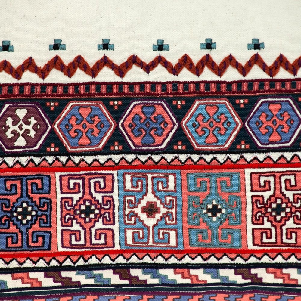 14" X 20" Blue Burgundy And Cream Abstract Cotton Blend Throw Pillow with Tassels
