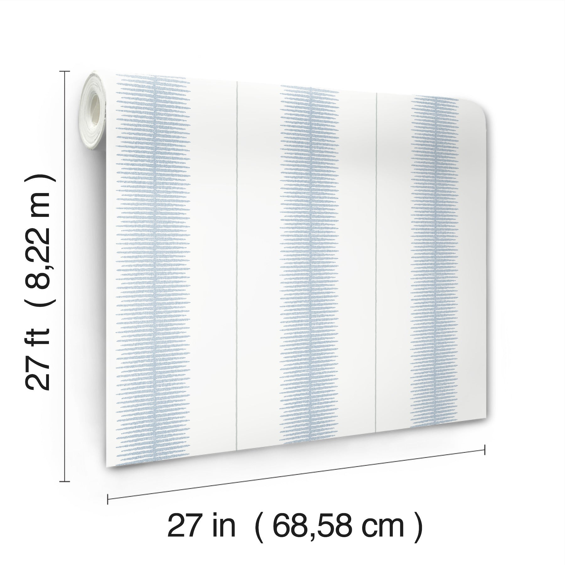 Use:Wide, feathered columns alternate with metallic pinstripes in Tanden Stripe's high-contrast rejuvenation of the classic pattern. Seen here in sky blue, cream, and polished silver. This Tandem Stripe Wallpaper measures approximately 27 inches wide by 27 feet long, measuring approximately 60.8 square feet per roll. Traditional and timeless meets modern refinement, with artfully crafted designs redefined in striking color palettes.