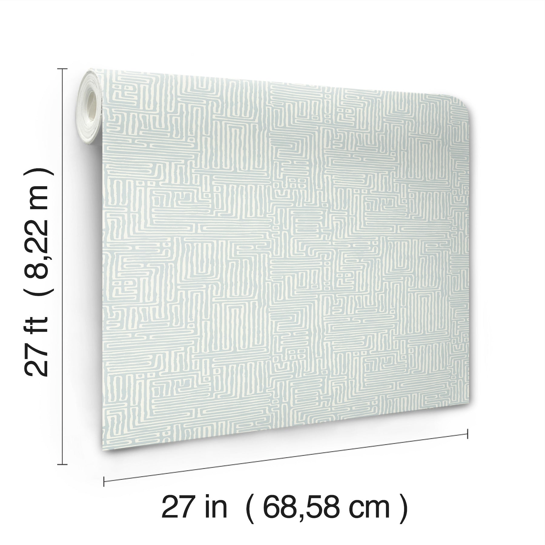 Use:The continuous brushstrokes of pattern Passages form an elaborate, meandering maze. Seen here in sky blue and cream. This Passages Wallpaper measures approximately 27 inches wide by 27 feet long, measuring approximately 60.8 square feet per roll. Traditional and timeless meets modern refinement, with artfully crafted designs redefined in striking color palettes.