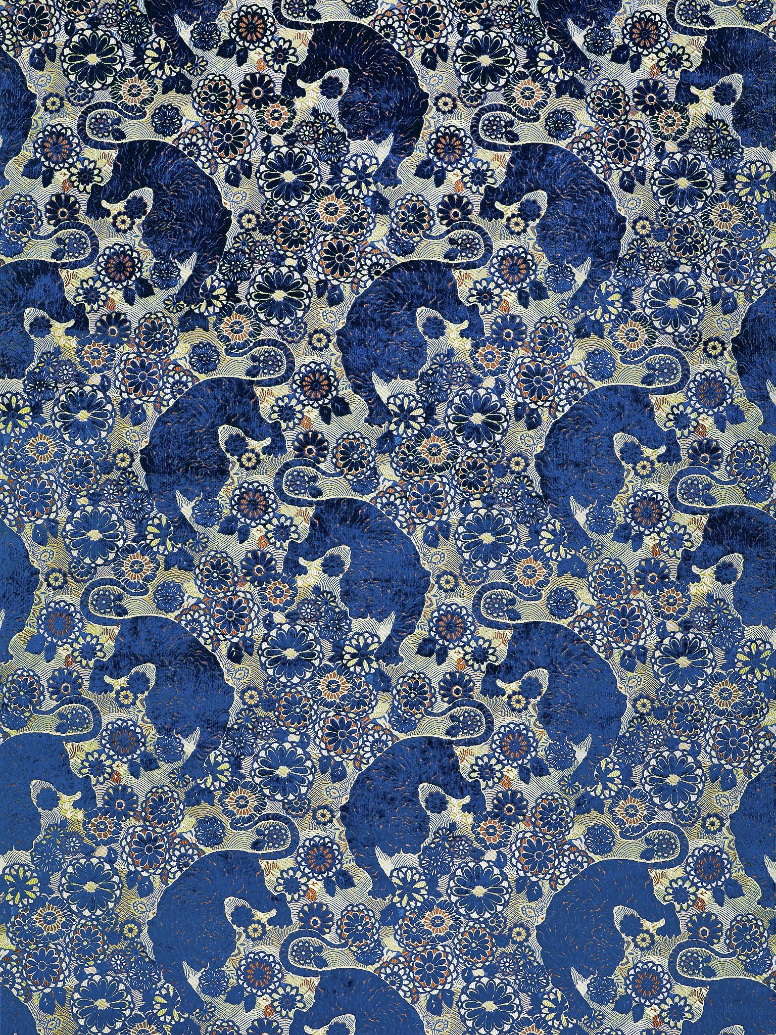 SCALAMANDRE SIBERIAN TIGER FABRIC SAPPHIRE FLAME - EA 000218V1 NEW SKU # EA18V10002