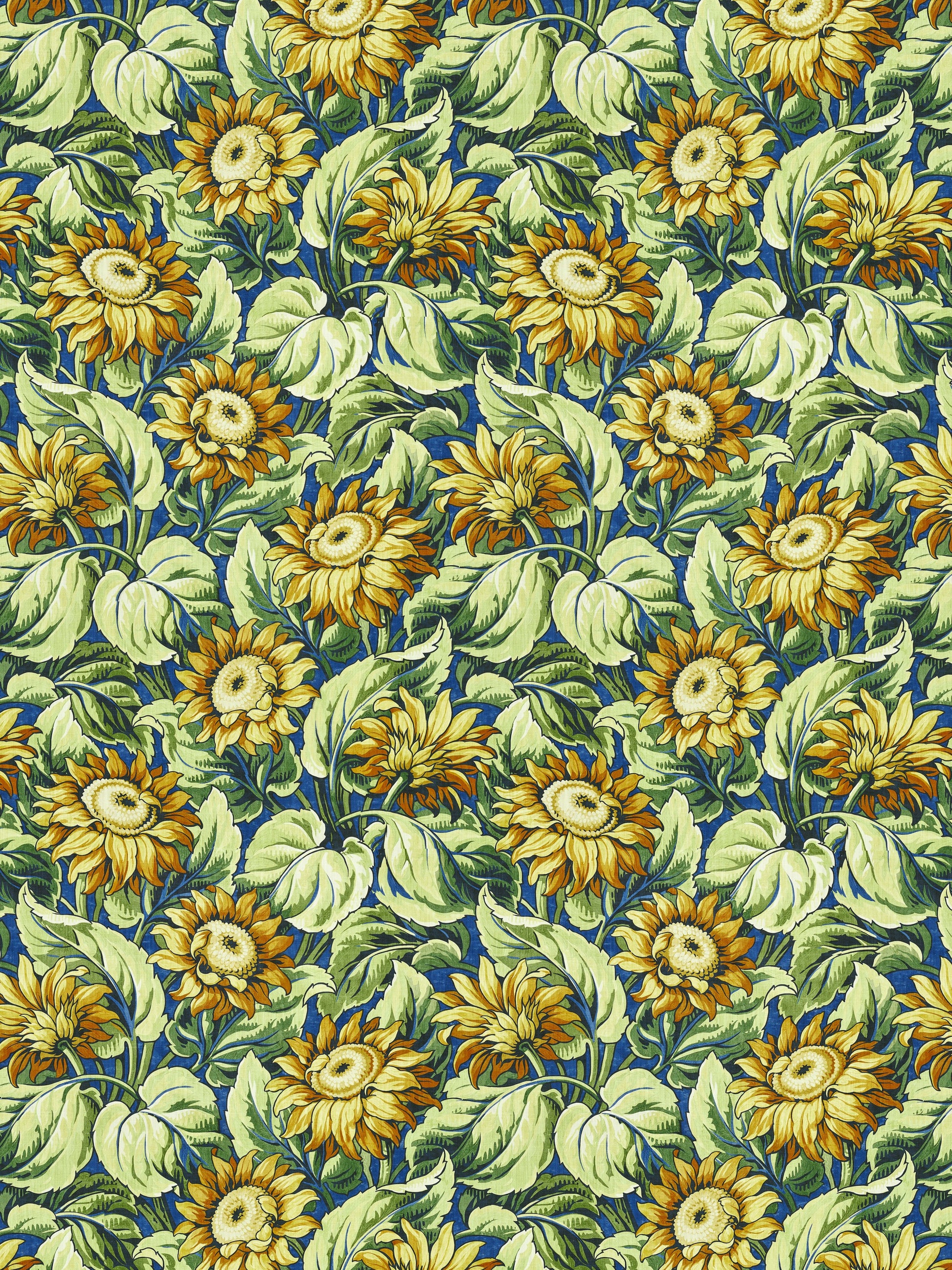 SCALAMANDRE SUNFLOWER PRINT FABRIC COBALT - GW 000216631 NEW SKU # GW166310002