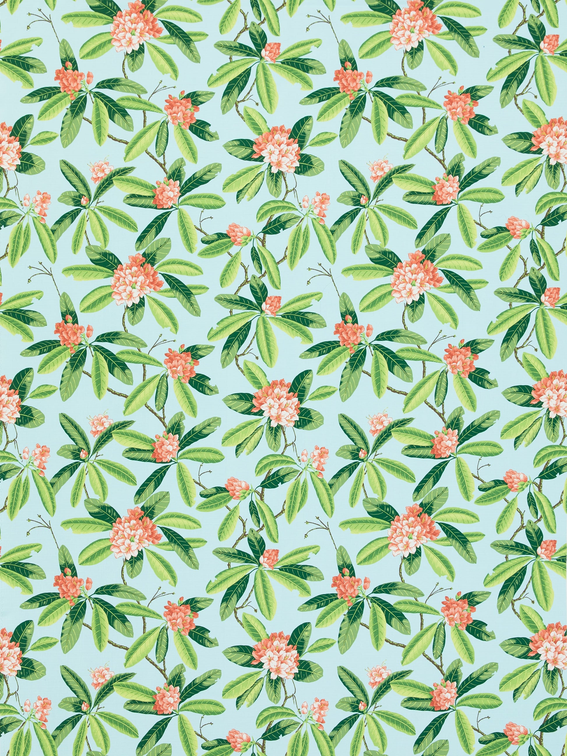 SCALAMANDRE RHODODENDRON - OUTDOOR FABRIC CORAL ON AQUA - SC 000316454M NEW SKU # SC16454M0003