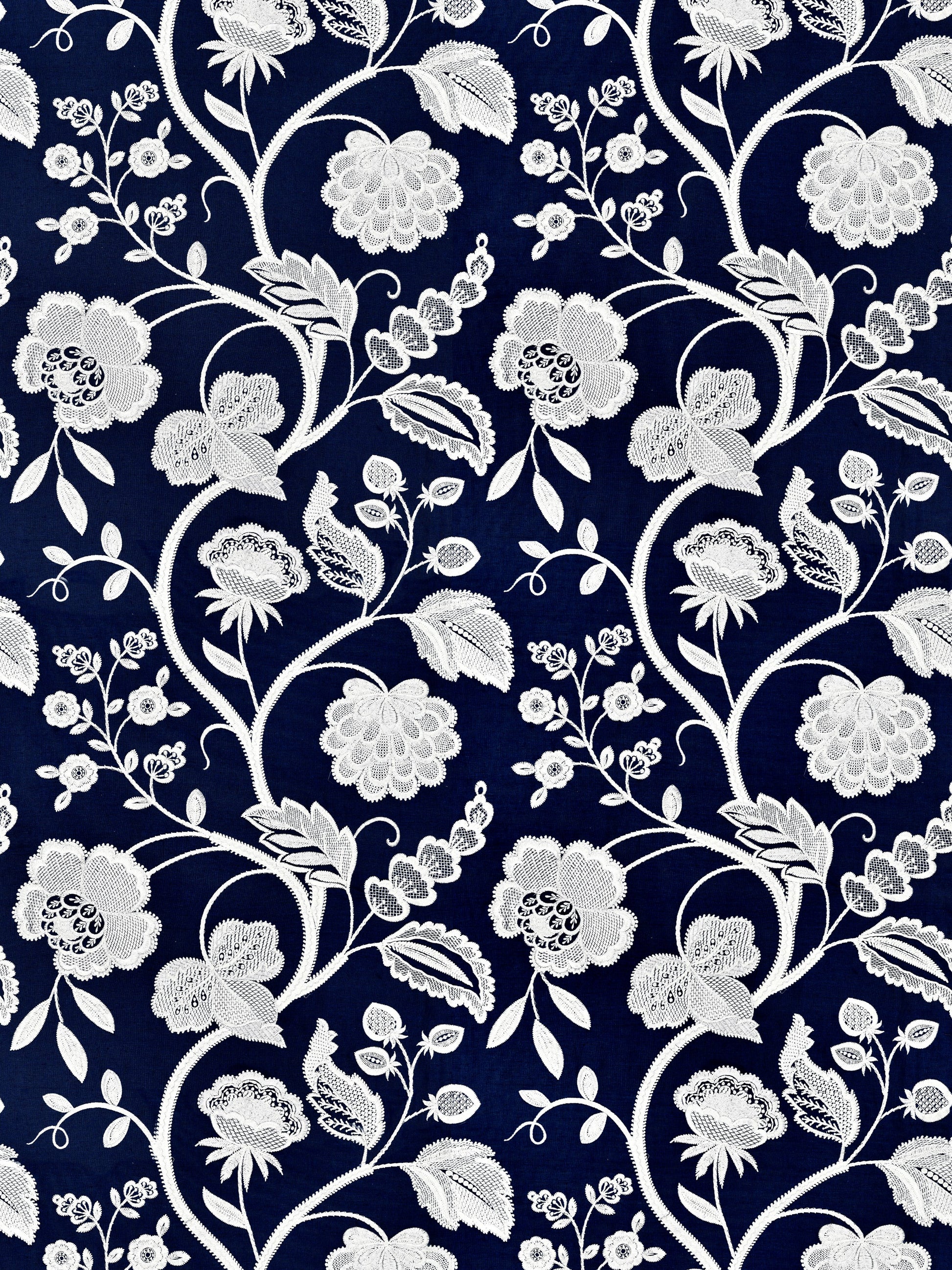 SCALAMANDRE KENSINGTON EMBROIDERY FABRIC NAVY - SC 000527151 NEW SKU # SC271510005