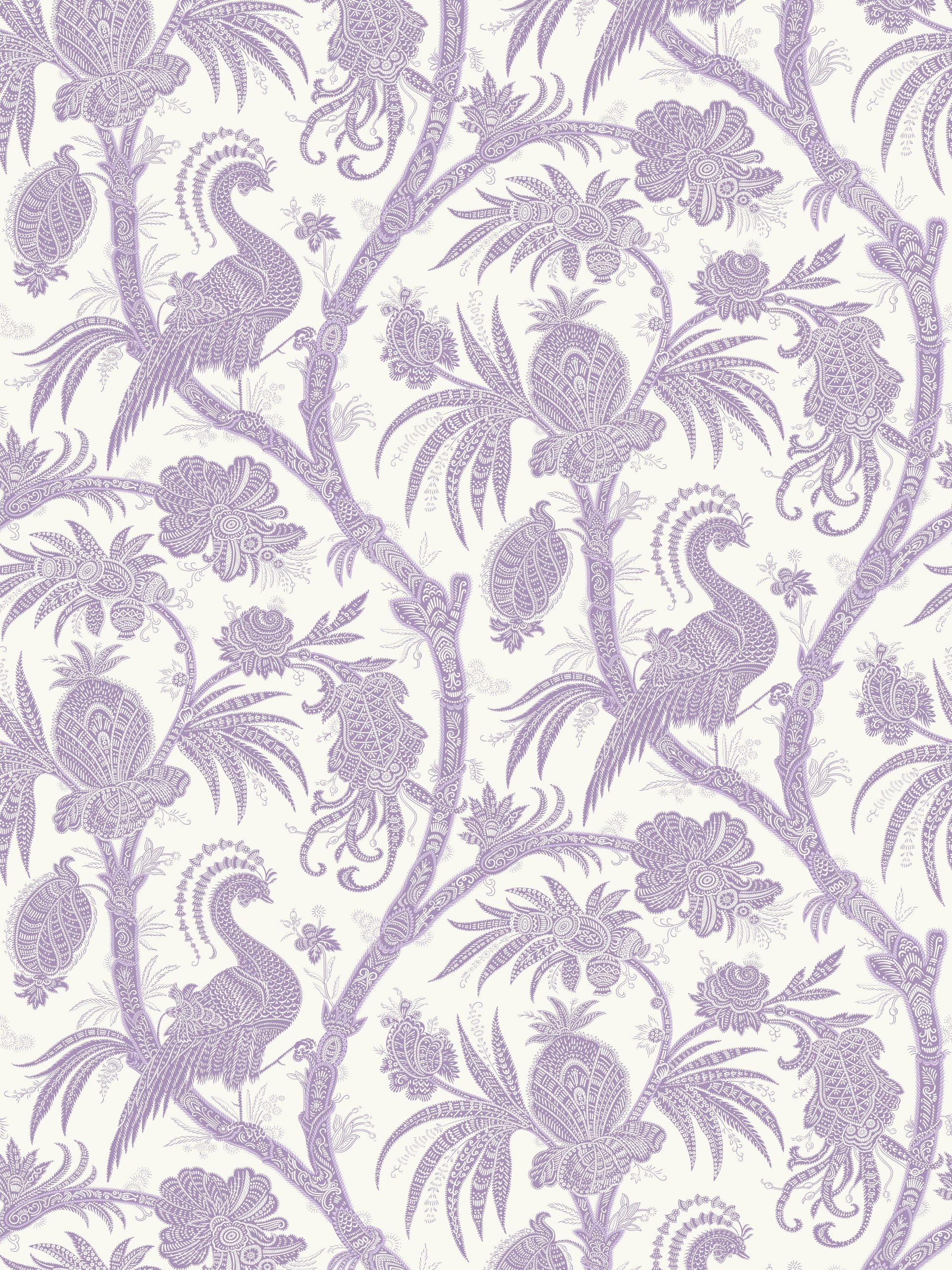 SCALAMANDRE BALINESE PEACOCK BIRD , ANIMAL BOTANICAL , FOLIAGE LAVENDER - SC 0003WP88355 NEW SKU # SCWP883550003