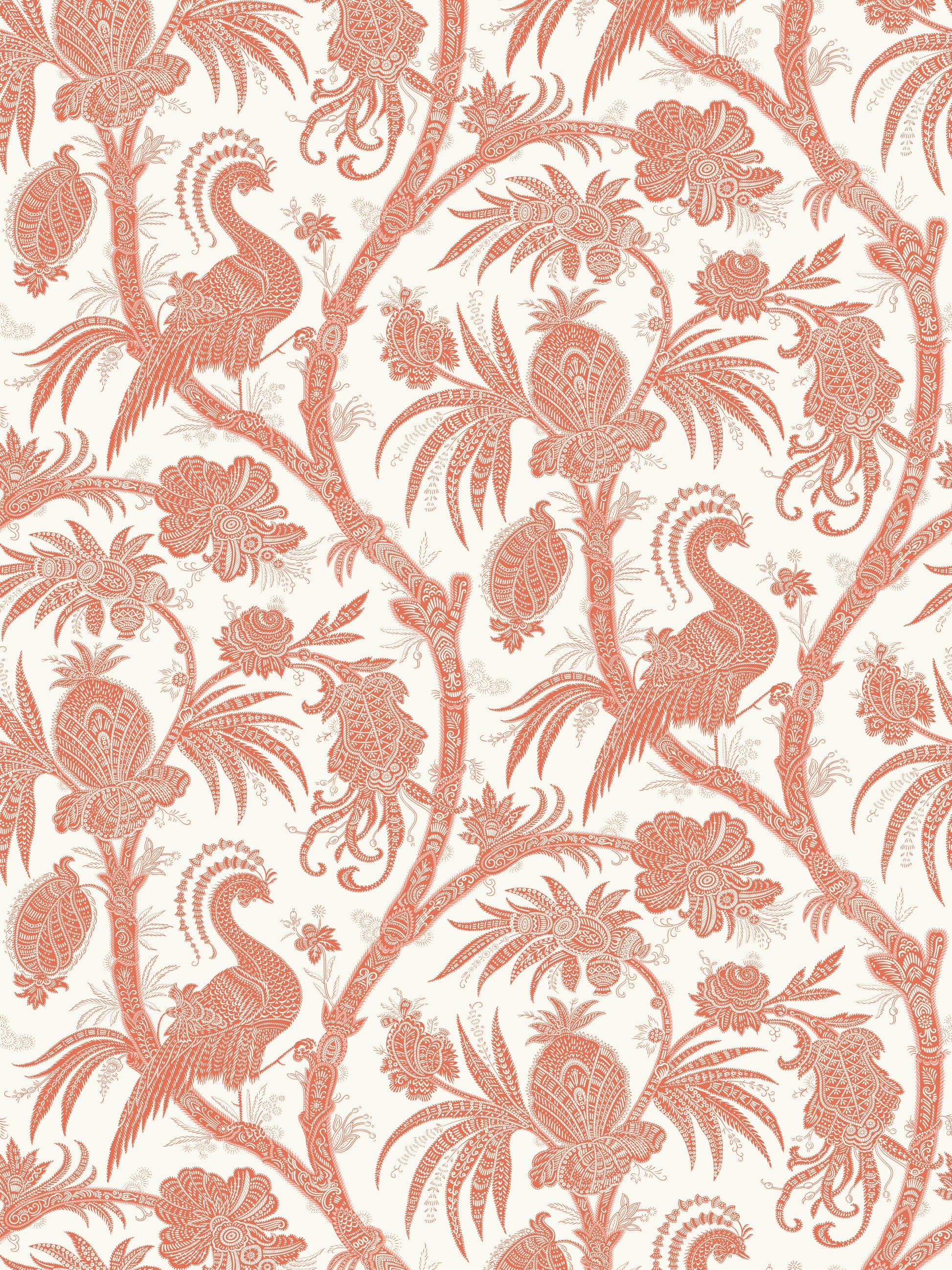 SCALAMANDRE BALINESE PEACOCK BIRD , ANIMAL BOTANICAL , FOLIAGE MANDARIN - SC 0005WP88355 NEW SKU # SCWP883550005