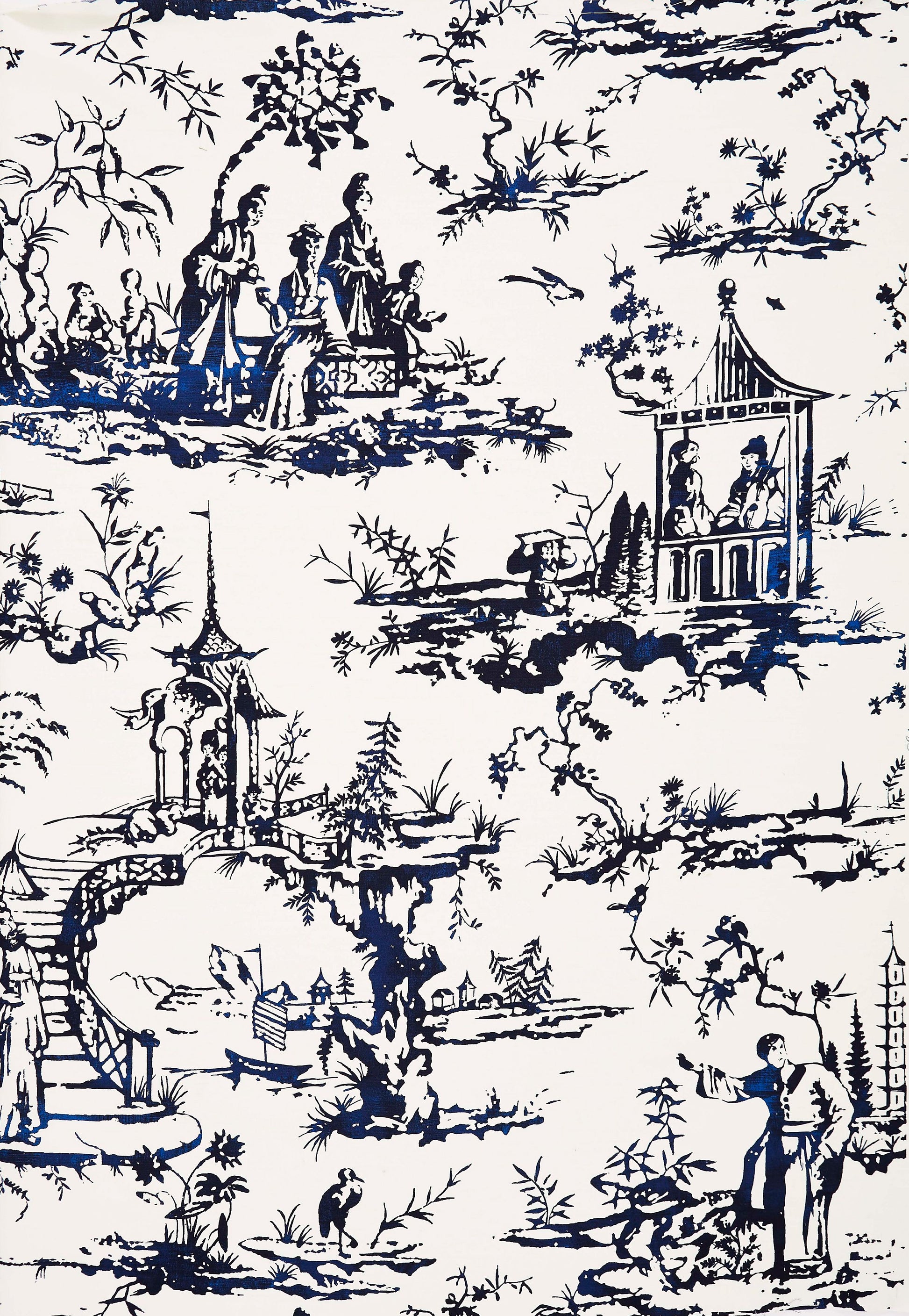 SCALAMANDRE SUMMER PALACE CHINOISERIE SCENIC TOILE PORCELAIN - SC 0001WP88357 NEW SKU # SCWP883570001