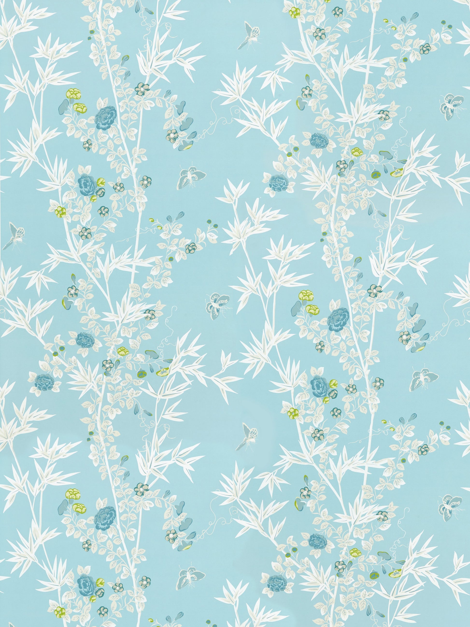 SCALAMANDRE JARDIN DE CHINE BIRD , ANIMAL BOTANICAL , FOLIAGE CHINOISERIE FLORAL CIEL - SC 0003WP88375 NEW SKU # SCWP883750003