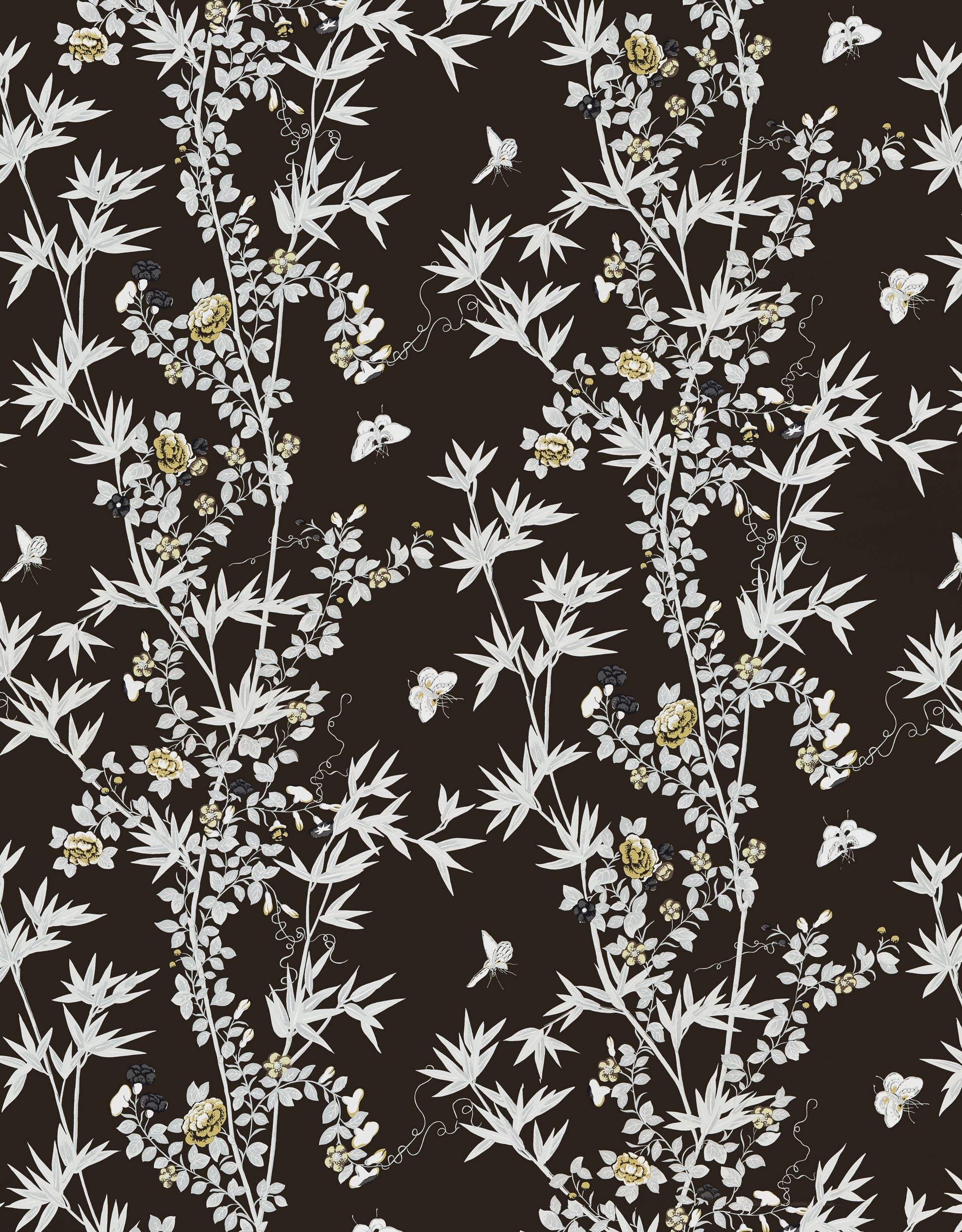 SCALAMANDRE JARDIN DE CHINE BIRD , ANIMAL BOTANICAL , FOLIAGE CHINOISERIE FLORAL ESPRESSO - SC 0005WP88375 NEW SKU # SCWP883750005