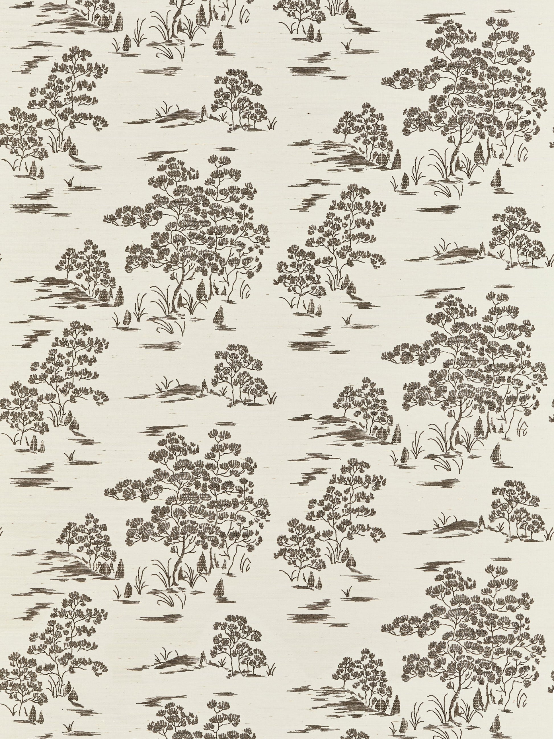 SCALAMANDRE KATSURA EMBROIDERED TOILE BOTANICAL , FOLIAGE CHINOISERIE TOILE BARK - SC 0002WP88445 NEW SKU # SCWP884450002