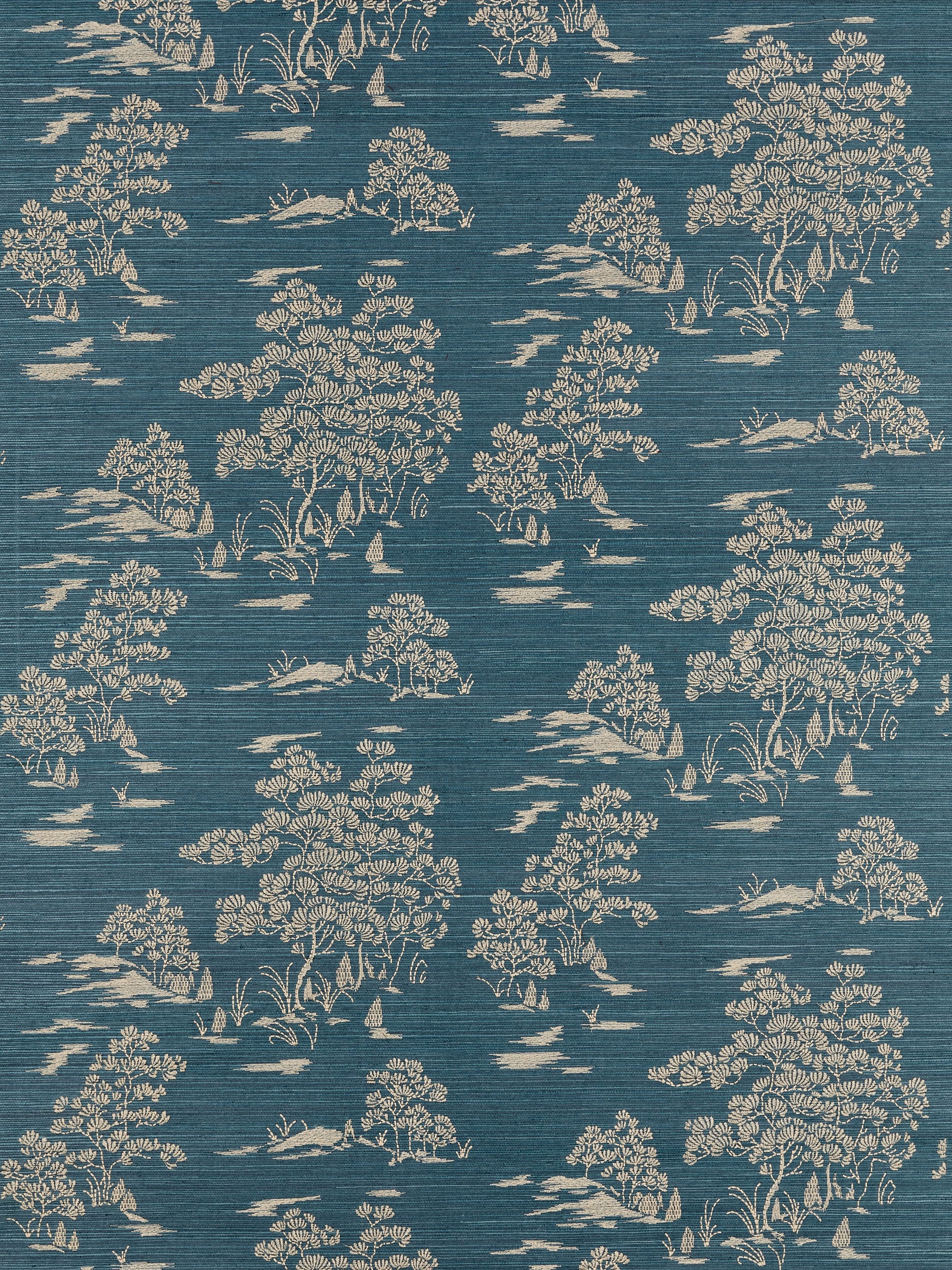 SCALAMANDRE KATSURA EMBROIDERED TOILE BOTANICAL , FOLIAGE CHINOISERIE TOILE PEACOCK - SC 0004WP88445 NEW SKU # SCWP884450004
