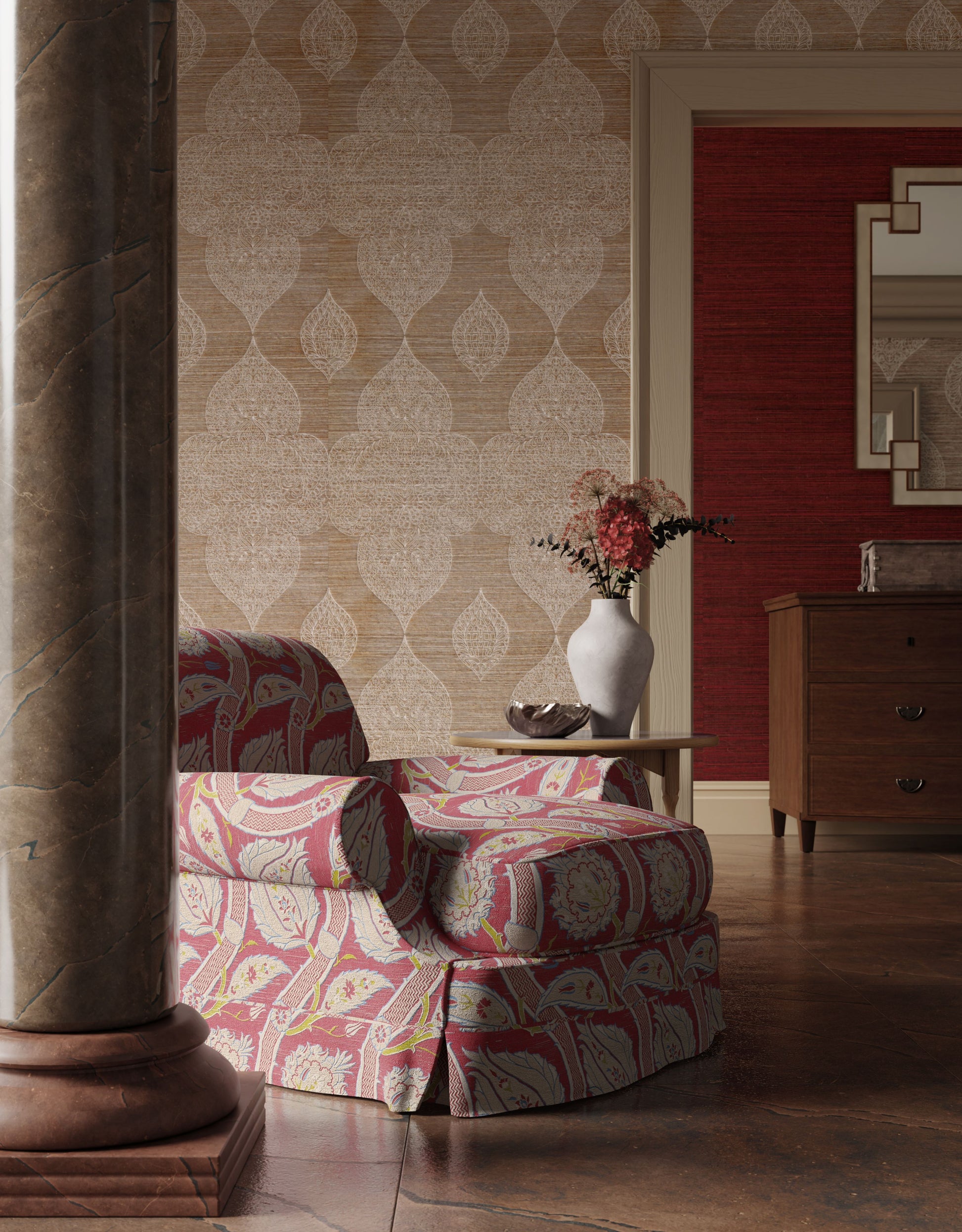 SCALAMANDRE TAJ EMBROIDERED SISAL MEDALLION PAISLEY NUTMEG - SC 0002WP88555 NEW SKU # SCWP885550002