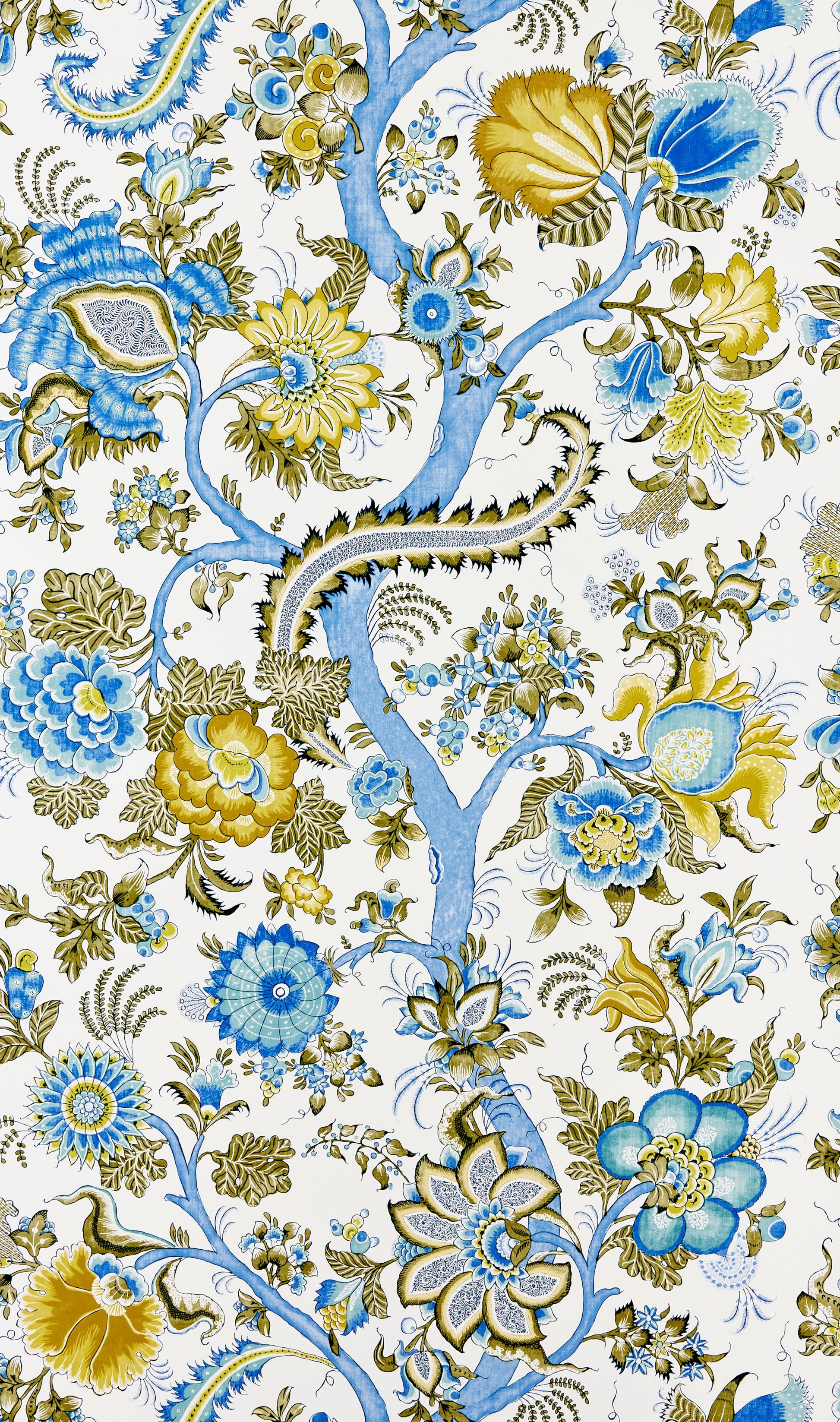 SCALAMANDRE METROPOLITAN PALAMPORE BOTANICAL , FOLIAGE FLORAL JACOBEAN , TREE OF LIFE SKY AND SUNLIGHT - SC 0001WP88561 NEW SKU # SCWP885610001
