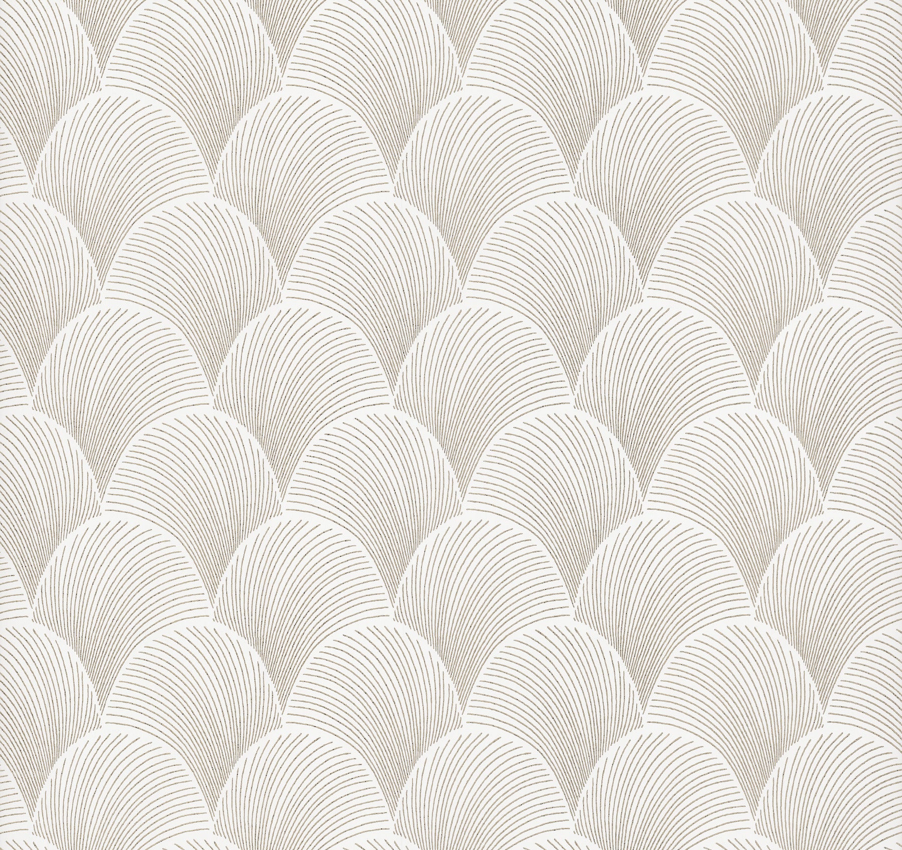 Use:The half-moon overlapping fans of the pattern Metallic Scallop create a field of color, accented with thin lines of raised liquid shimmer to emphasize its beautiful organic curves, shown in sandy white with with dazzling gold. This Metallic Scallop Wallpaper measures approximately 27 inches wide by 27 feet long, measuring approximately 60.8 square feet per roll. Finding beauty in this extraordinary organic world.