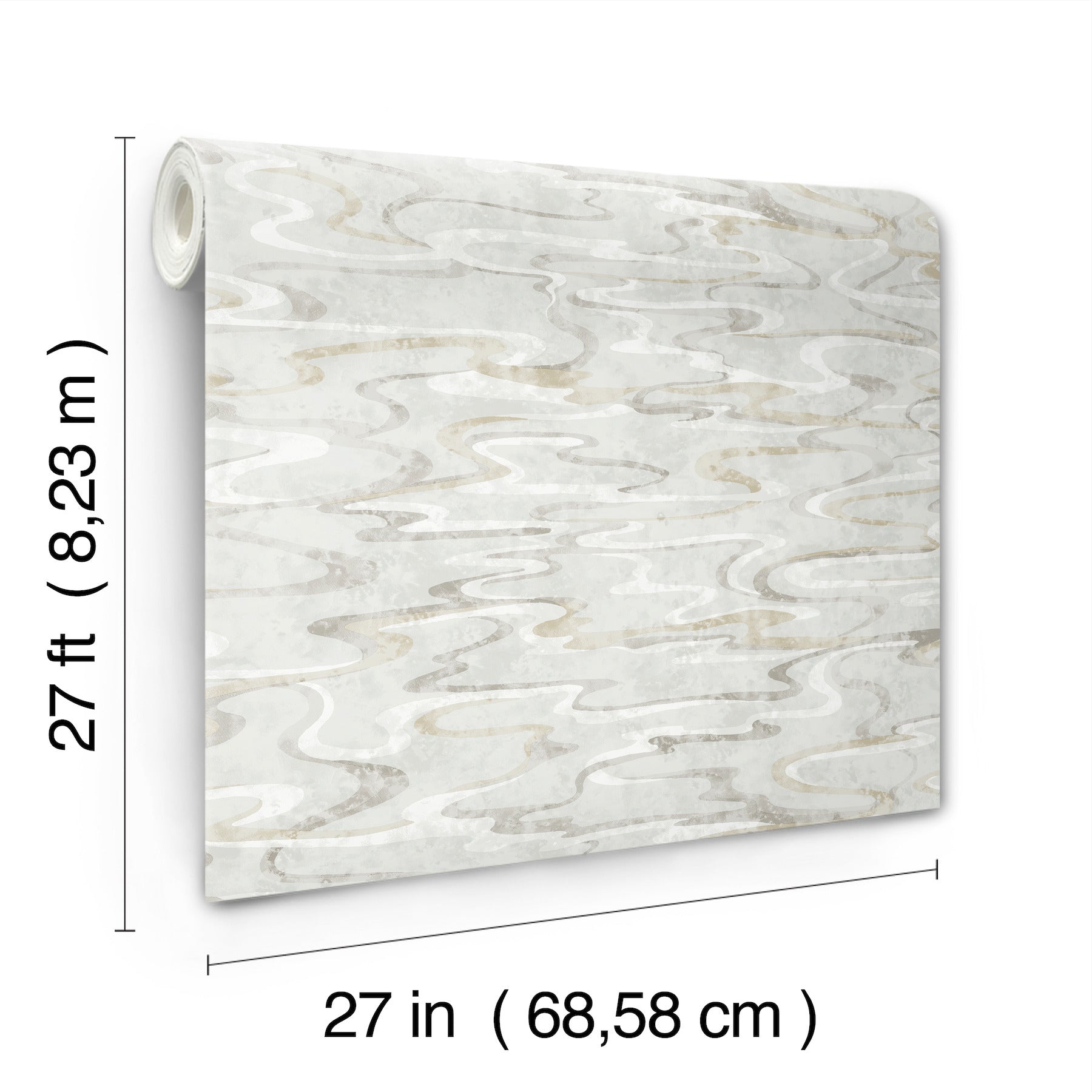 Use:Sinuous swirls create an abstract of painterly color across an artistic backdrop in the pattern Dreamland, shown in misty grey, earth, and white. This Dreamland Wallpaper measures approximately 27 inches wide by 27 feet long, measuring approximately 60.8 square feet per roll. Finding beauty in this extraordinary organic world.