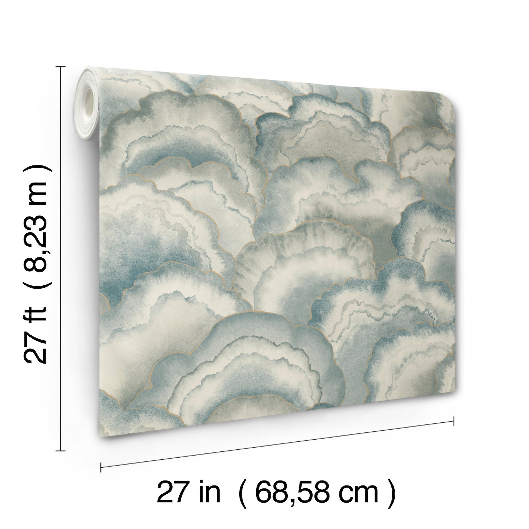 Use:Watercolor demilune shapes create layers of soft, natural semicircles on the pattern Abalone Fans, shown in misty blue with antique gold. This Abalone Fans Wallpaper measures approximately 27 inches wide by 27 feet long, measuring approximately 60.8 square feet per roll. Finding beauty in this extraordinary organic world.