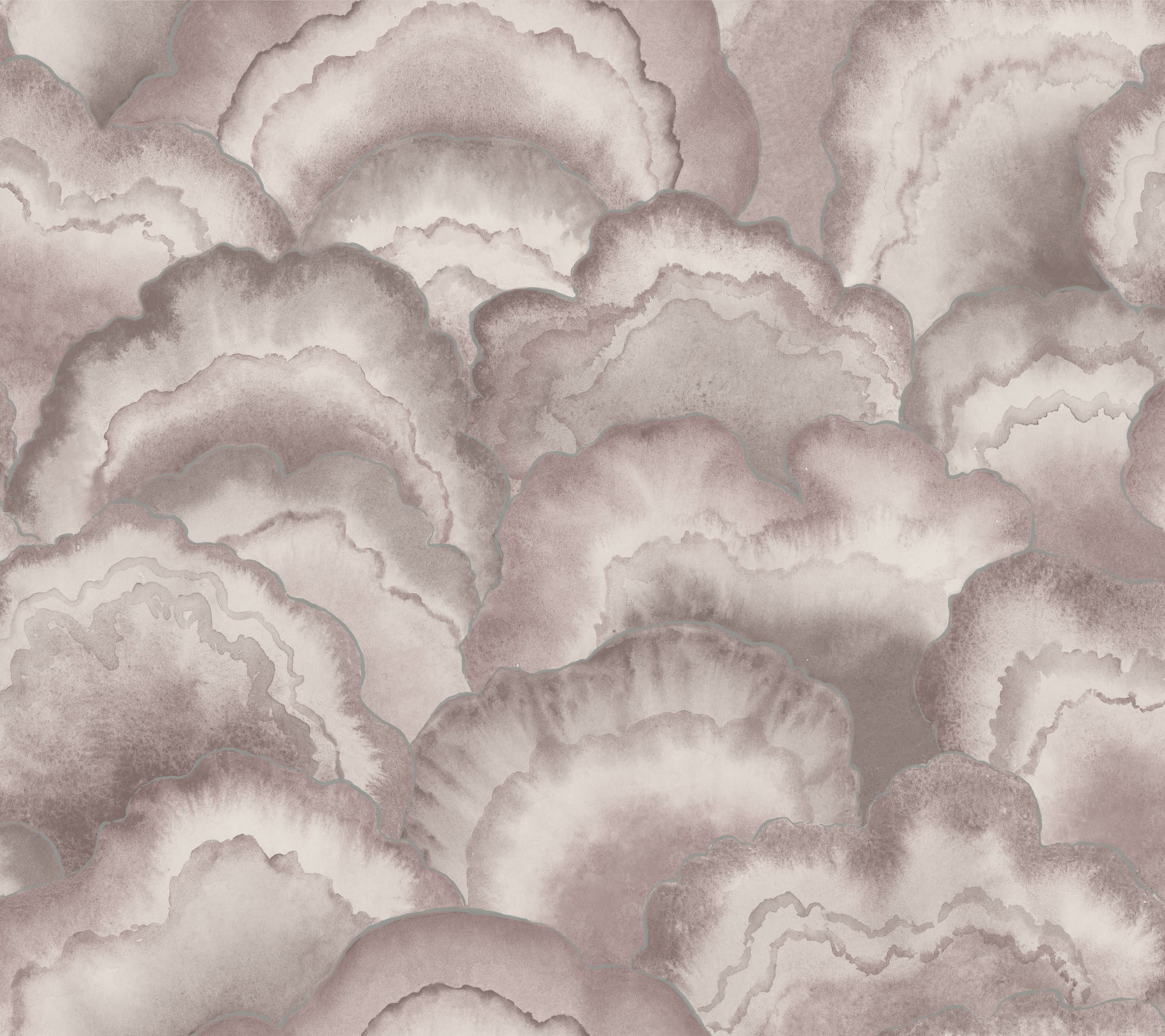 Use:Watercolor demilune shapes create layers of soft, natural semicircles on the pattern Abalone Fans, shown in thistle lavender, with nickle metallic. This Abalone Fans Wallpaper measures approximately 27 inches wide by 27 feet long, measuring approximately 60.8 square feet per roll. Finding beauty in this extraordinary organic world.