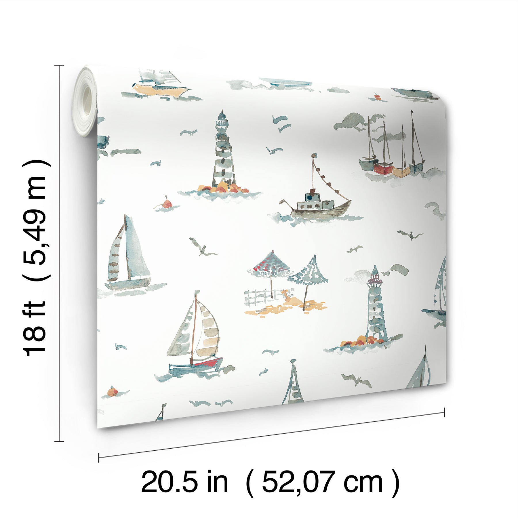 Use:Set sail for easygoing style with this watercolor-inspired wallpaper. Nautical icons like sailboats, fishing vessels, beach huts, and lighthouses float across a crisp white backdrop in hues of blue, green and yellow. The breezy brushstrokes lend a light, hand-painted feel ? ideal for creating a laid-back coastal vibe in nurseries, guest rooms, or entryways. Set Sail Blue Green Peel and Stick Wallpaper comes on one roll that measures 20.5 inches wide by 18 feet long. Breezy watercolor sailboat peel and stick wallpaper in an upbeat blue and yellow color palette; Peel and stick to apply, pull up to remove; NuWallpaper is safe for walls and leaves no sticky residue behind; Easily repositionable while installing; NuWallpaper sticks to any smooth, flat surface - perfect for DIY projects; Ideal for rental or home decorating; Comes on a 20.5-in x 18-ft roll and covers about 30.75 sq. ft; Design repeat of 20.5-in; This product should NOT be applied to textured walls - smooth clean, dry, painted surface only (no Non-Stick paint or soap residue).