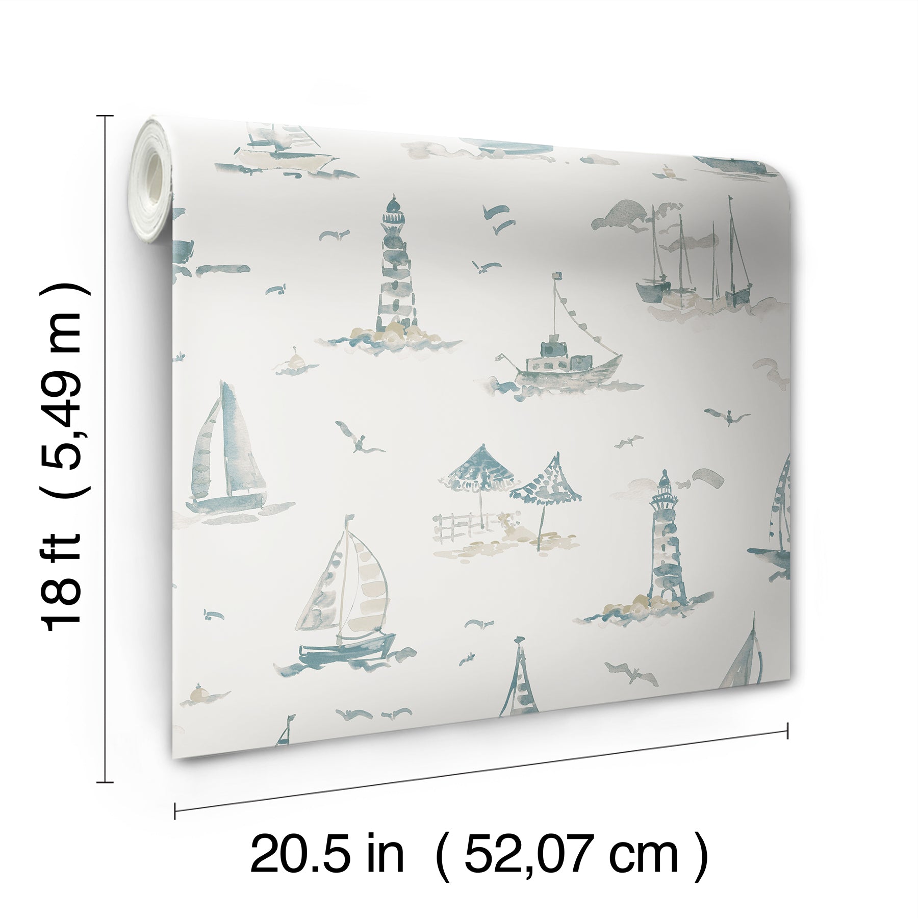 Use:Set sail for easygoing style with this watercolor-inspired wallpaper. Nautical icons like sailboats, fishing vessels, beach huts, and lighthouses float across a soft, sandy backdrop in hues of blue and taupe. The breezy brushstrokes lend a light, hand-painted feel ? ideal for creating a laid-back coastal vibe in nurseries, guest rooms, or entryways. Set Sail Taupe Peel and Stick Wallpaper comes on one roll that measures 20.5 inches wide by 18 feet long. Breezy watercolor sailboat peel and stick wallpaper in a cozy blue and sandy beige color palette; Peel and stick to apply, pull up to remove; NuWallpaper is safe for walls and leaves no sticky residue behind; Easily repositionable while installing; NuWallpaper sticks to any smooth, flat surface - perfect for DIY projects; Ideal for rental or home decorating; Comes on a 20.5-in x 18-ft roll and covers about 30.75 sq. ft; Design repeat of 20.5-in; This product should NOT be applied to textured walls - smooth clean, dry, painted surface only (no Non-Stick paint or soap residue).