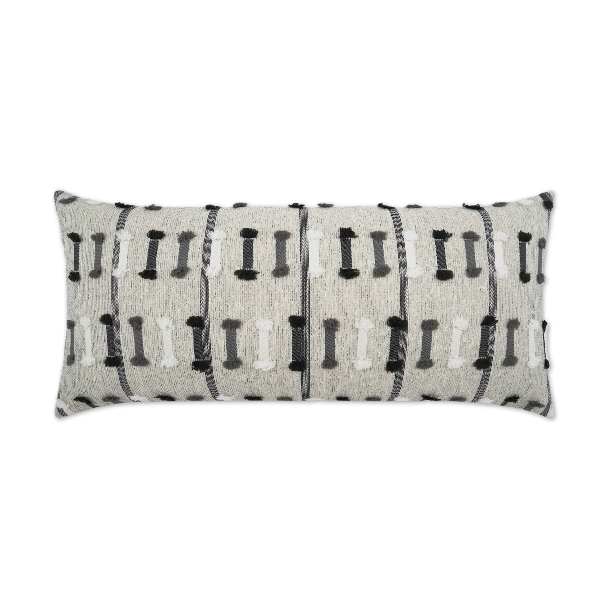 D.V. KAP HOME 12" x 24" Outdoor Tassel Stripe Lumbar Pillow - Grey Global, Stripes - OD-486-G-1224