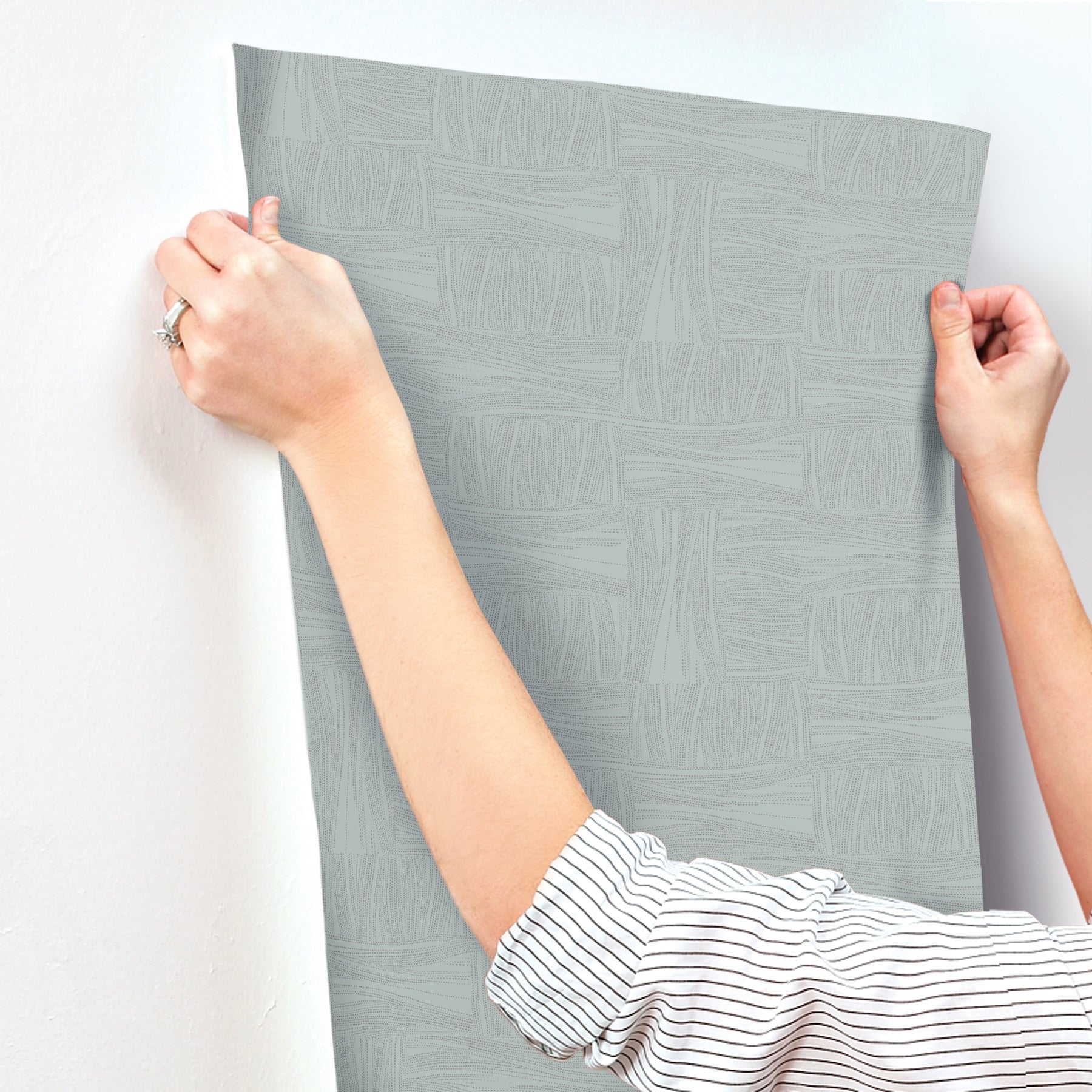 Use:A flowing stream of irregular metallic dots creates an oversized weave in Wicker Dots, shown in slate blue with gunmetal. This Wicker Dot Wallpaper measures approximately 27 inches wide by 27 feet long, measuring approximately 60.8 square feet per roll. The modern aesthetic of natural form.