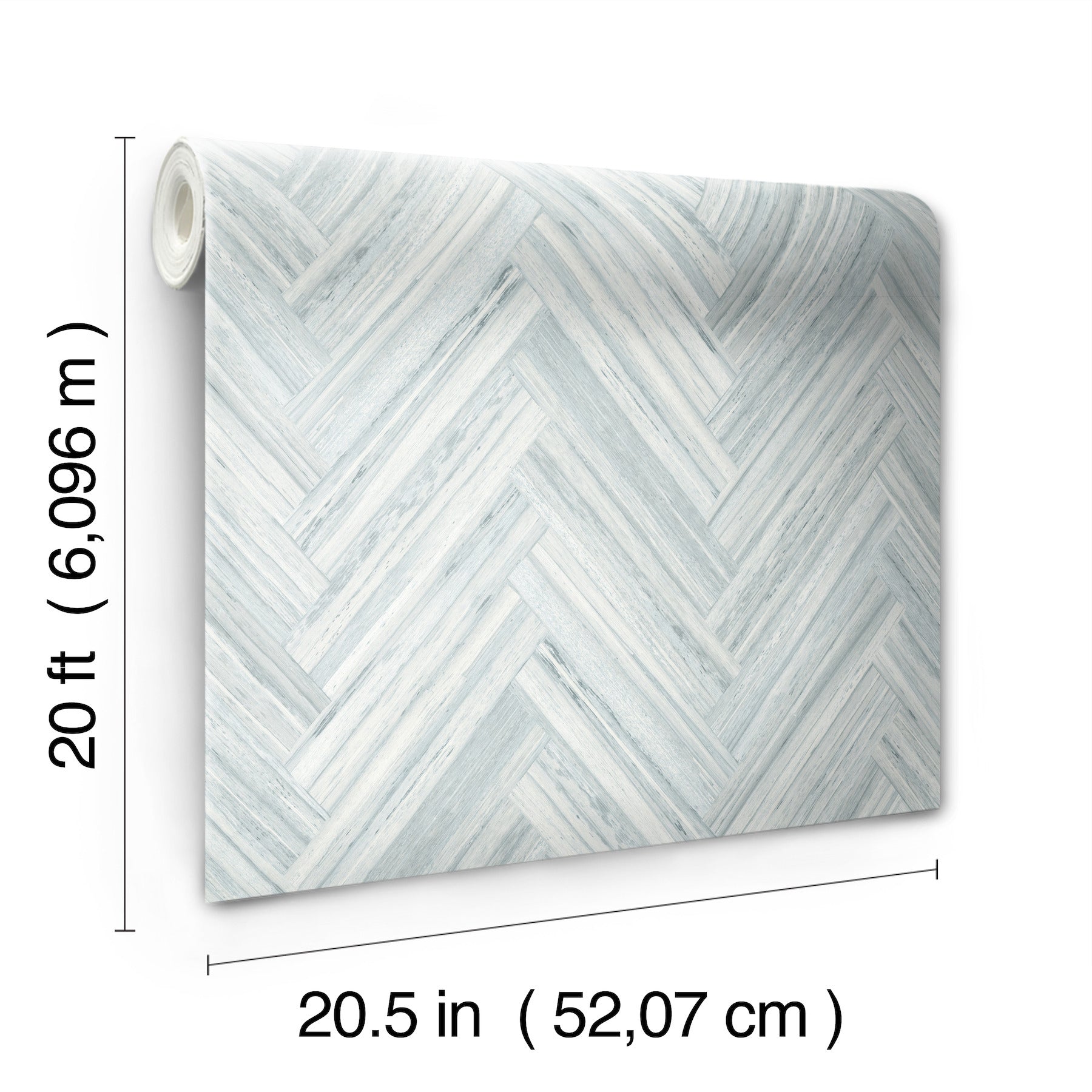 Use:The stacked planks of pattern Hermosa Herringbone mimic raw, weathered wood repurposed in a beautiful take on a classic menswear suiting weave, shown in stonewash blue and faded gray. This blue hermosa herringbone peel and stick wallpaper measures 20.5 inches wide by 20 feet long, covering approximately 34.2 square feet per roll. The ultimate pattern inspirations for architectural finishes, motifs, and textures as found in nature. Cerused woodgrain, distinctive woven grass, cork, stone, clay, marble, and mother of pearl bring warmth and depth to surrounding spaces with familiar comfort.