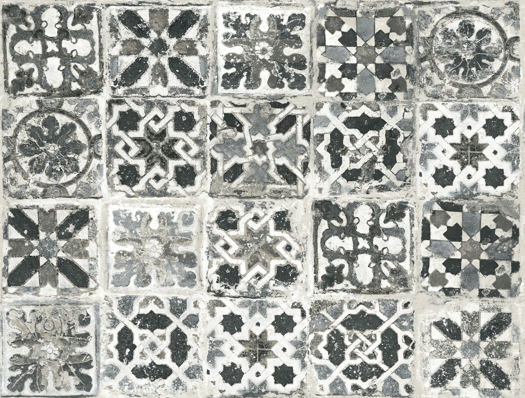 York Wallcoverings Grasscloth, Wood and Stone Encaustic Tile Black Peel and Stick Wallpaper Brick, Wood and Stone Blacks Wallpaper - PSW1303RL
