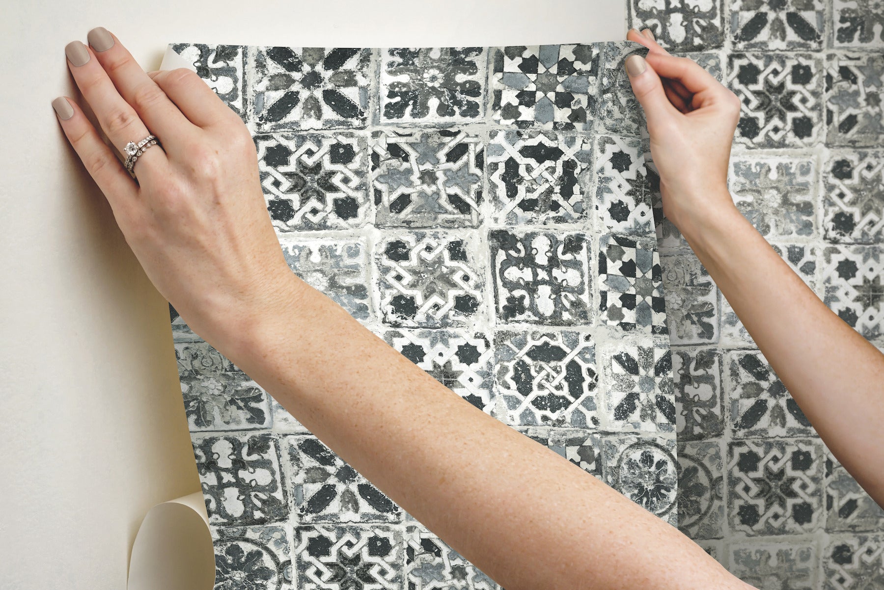 Use:The intricacy of design inherent in hand poured clay tiles creates the beautiful aesthetic of pattern Encaustic Tile. This Encaustic Tile Peel and Stick Wallpaper measures approximately 27 inches wide by 20 feet long, measuring approximately 45 square feet per roll. This product is a superior luxury non-woven peel and stick wallpaper, which removes easily in full strips without damage to surfaces.