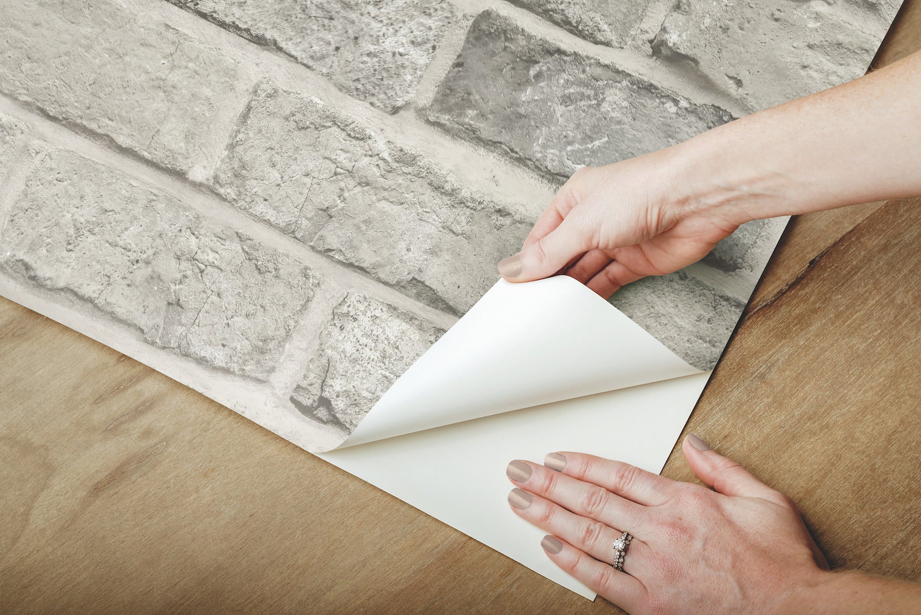 Use:The classic brick formation of pattern Stretcher Brick builds the distinctive look of weathered masonry. This Stretcher Brick Peel and Stick Wallpaper measures approximately 27 inches wide by 20 feet long, measuring approximately 45 square feet per roll. This product is a superior luxury non-woven peel and stick wallpaper, which removes easily in full strips without damage to surfaces.