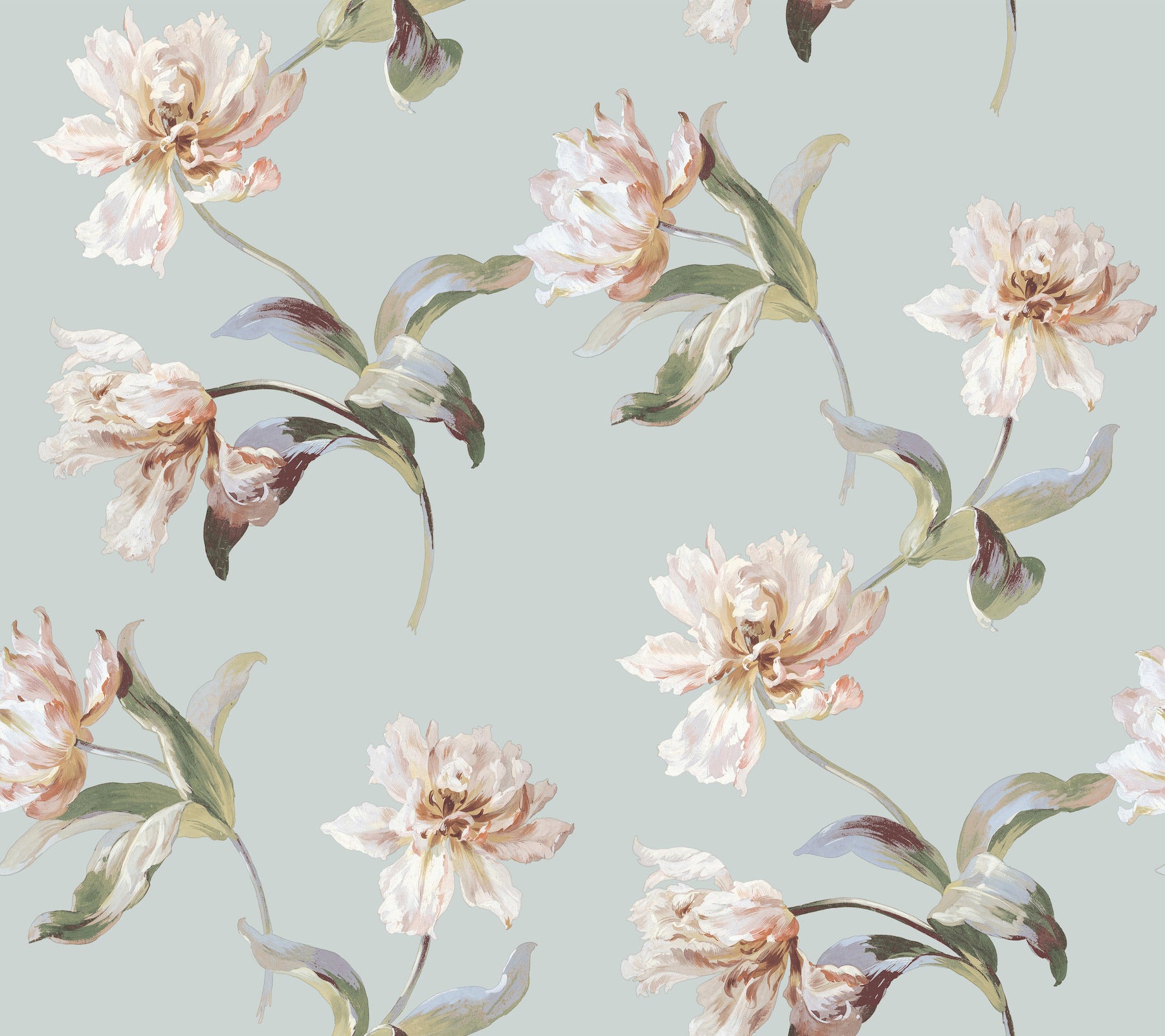 Use:A lovely toss of flowers and stems makes pattern Large Parrot Tulip the perfect accent for adding charming elegance, the white and peach blossoms and blue-tinged greenery accented by pale, robins egg blue. This Large Parrot Tulip Peel and Stick Wallpaper measures approximately 27 inches wide by 20 feet long, measuring approximately 45 square feet per roll. Heritage botanical beauty is inspired by forests, fields, and gardens in bloom.