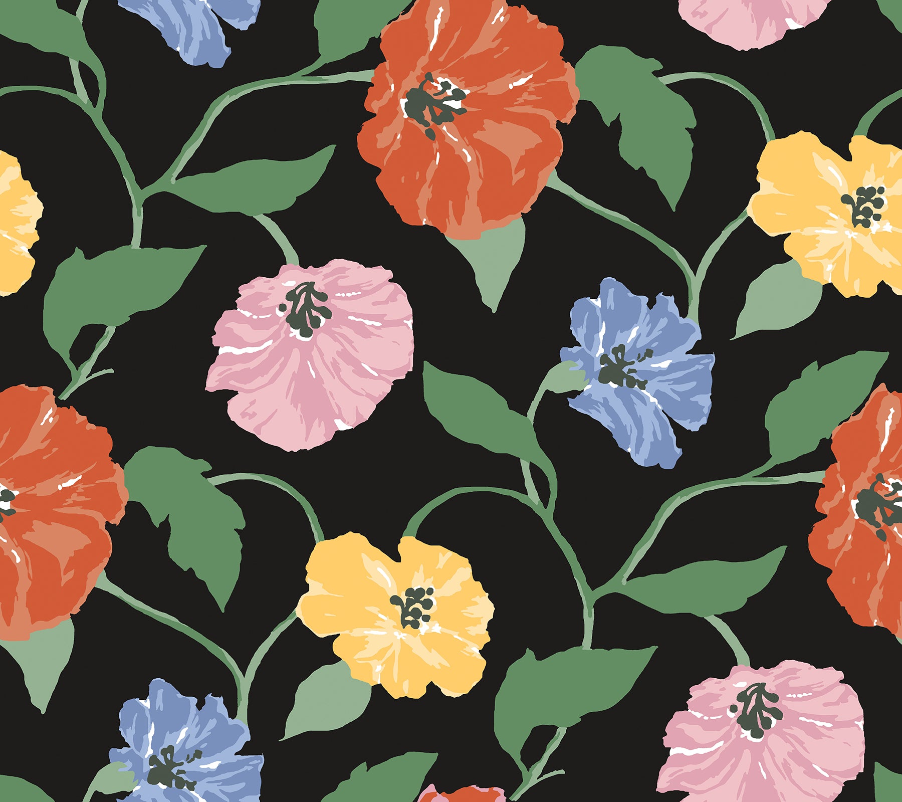 York Wallcoverings Madcap Cottage Jungle Garden Nightfall Peel and Stick Wallpaper Florals and Flowers Blacks Wallpaper - PSW1399RL