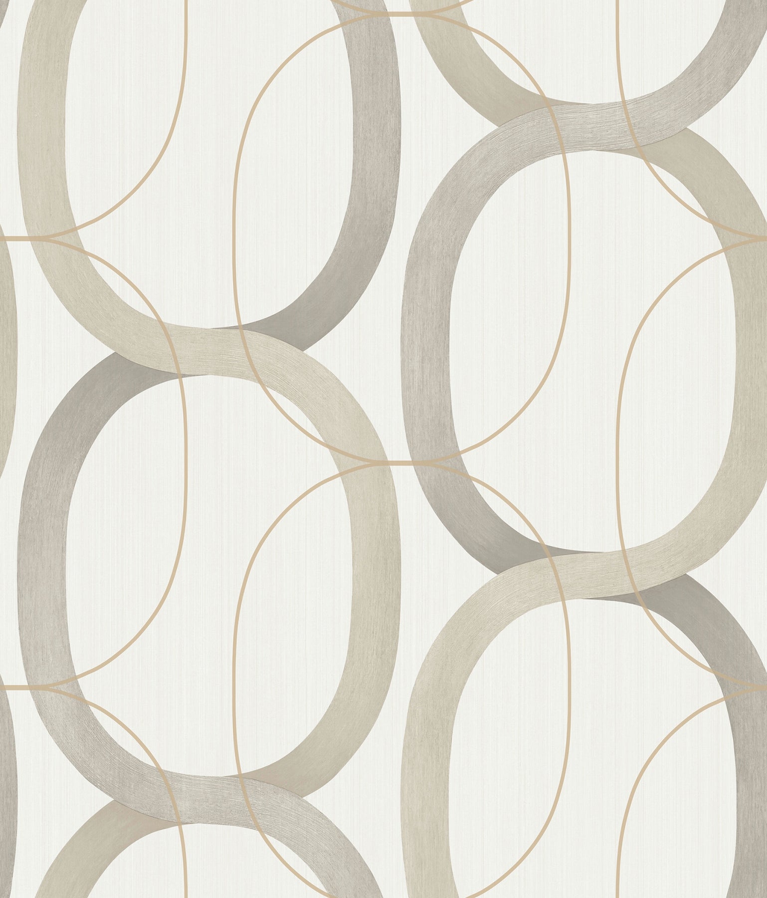 Use:Chain link ribbons in earthy taupe are layered with thin ovals of burnished brass in this dynamic color combination. This light taupe interlock peel and stick wallpaper measures 20.5 inches wide by 20 feet long, covering approximately 34.2 square feet per roll. Candice Olson?s celebrated signature of current yet timeless design inspires these popular additions to her Premium Peel + Stick product offering. This is Simply Candice.