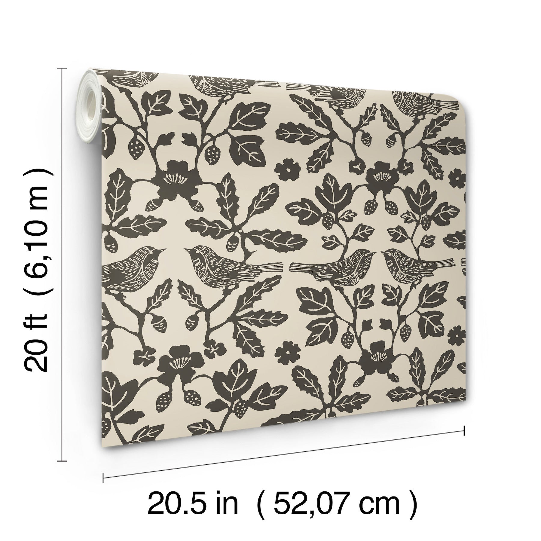 Use:Songbirds-in-silhouette perch among flowering stems and leaves in the heirloom-inspired pattern Sparrow and Oak, shown in charcoal grey on linen tan. This Sparrow and Oak Peel and Stick Wallpaper measures approximately 20.5 inches wide by 20 feet long, measuring approximately 34.2 square feet per roll. The Erin and Ben Co.? collection is filled with beautiful florals, vintage botanicals, and whimsical folk-art inspirations, lending a personal touch to help build a layered, nostalgic home design.