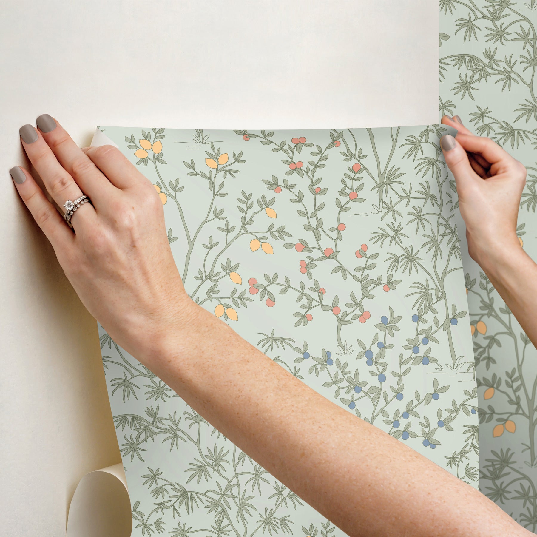 York Wallcoverings Peel and Stick Rifle Paper 2 Lemon Grove Vintage Duck Egg Peel and Stick Wallpaper Botanical Blues Wallpaper - PSW1453RL