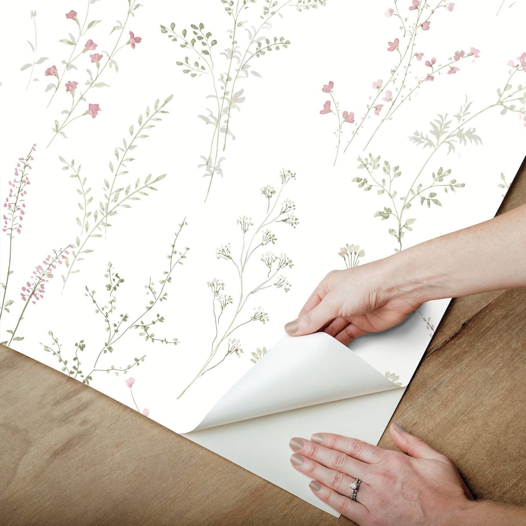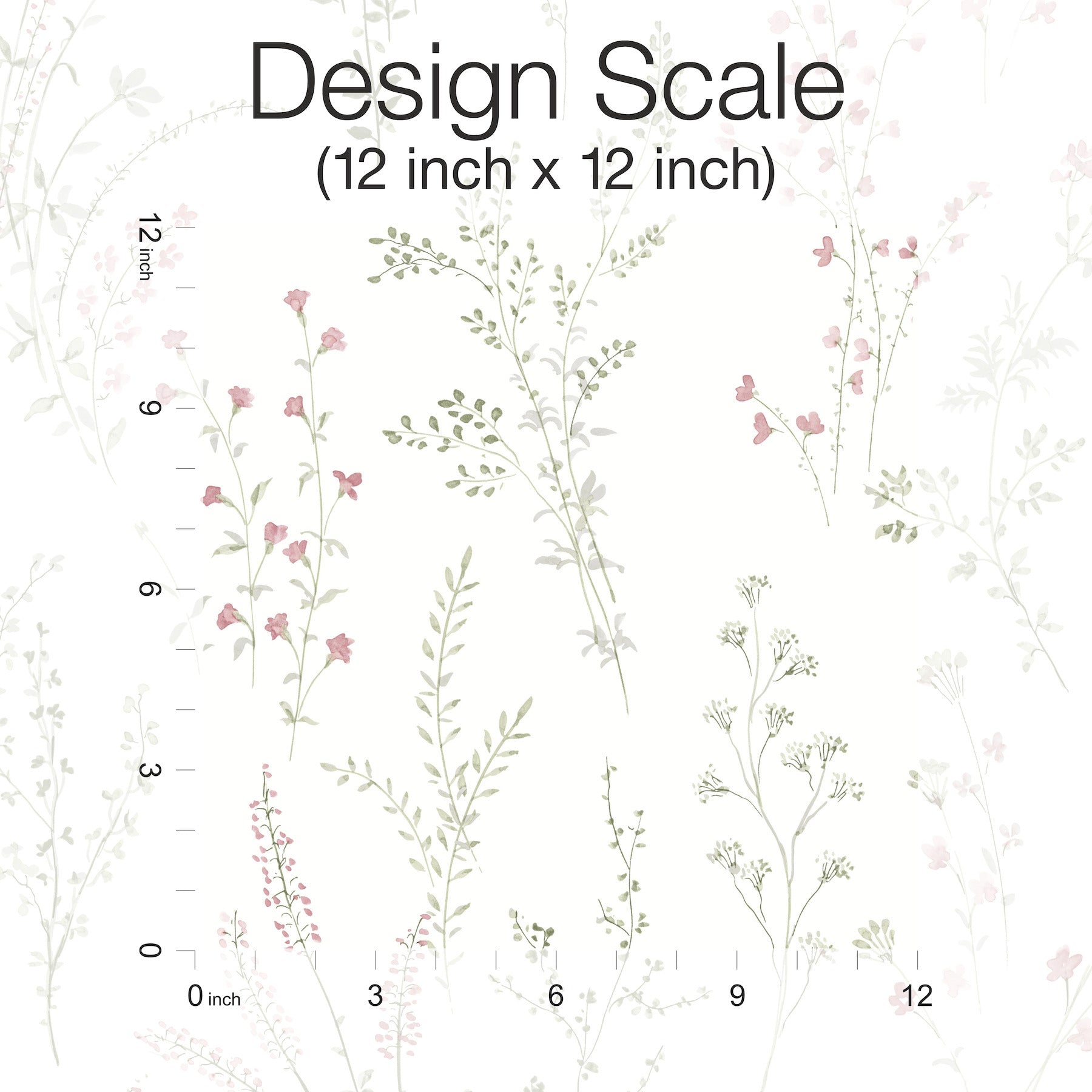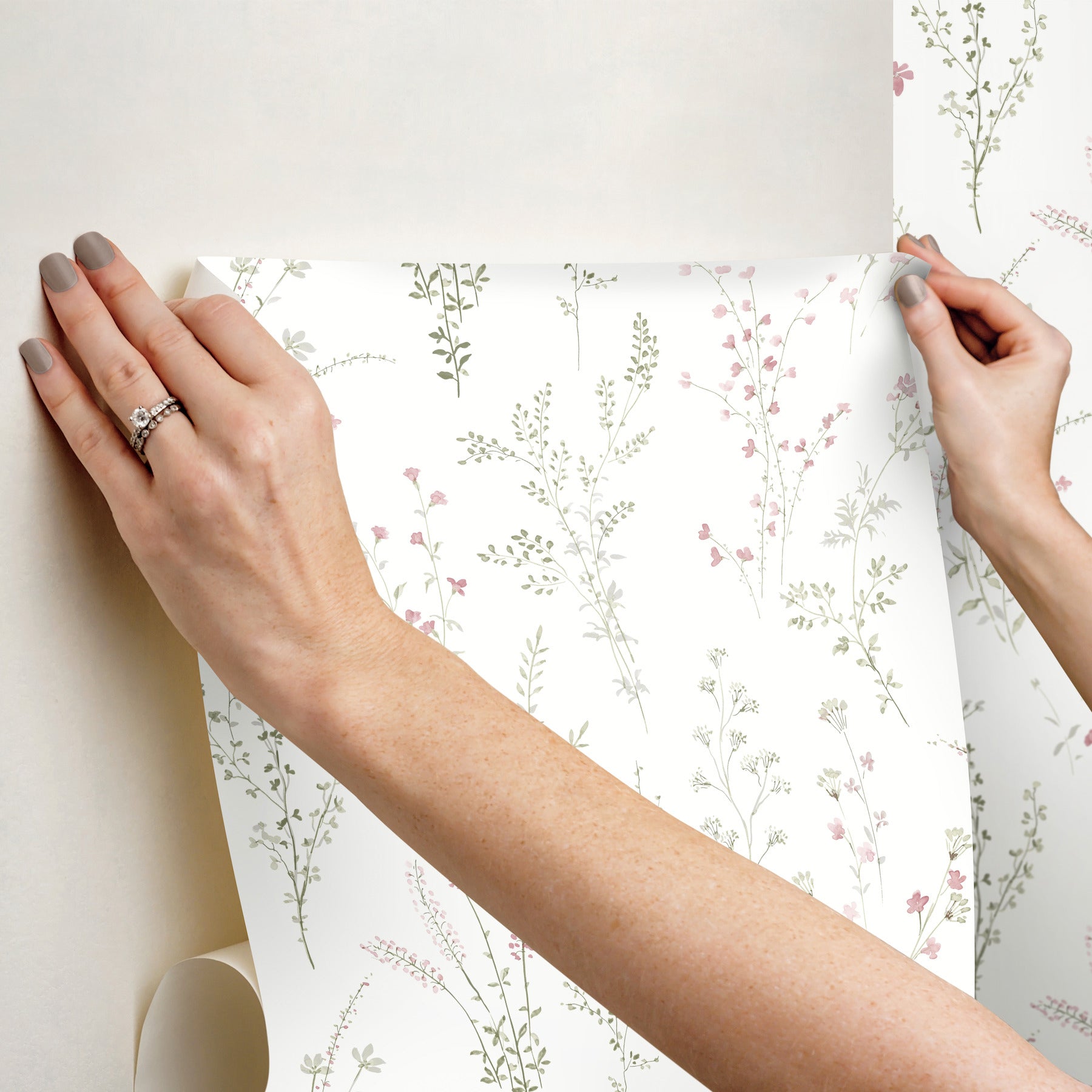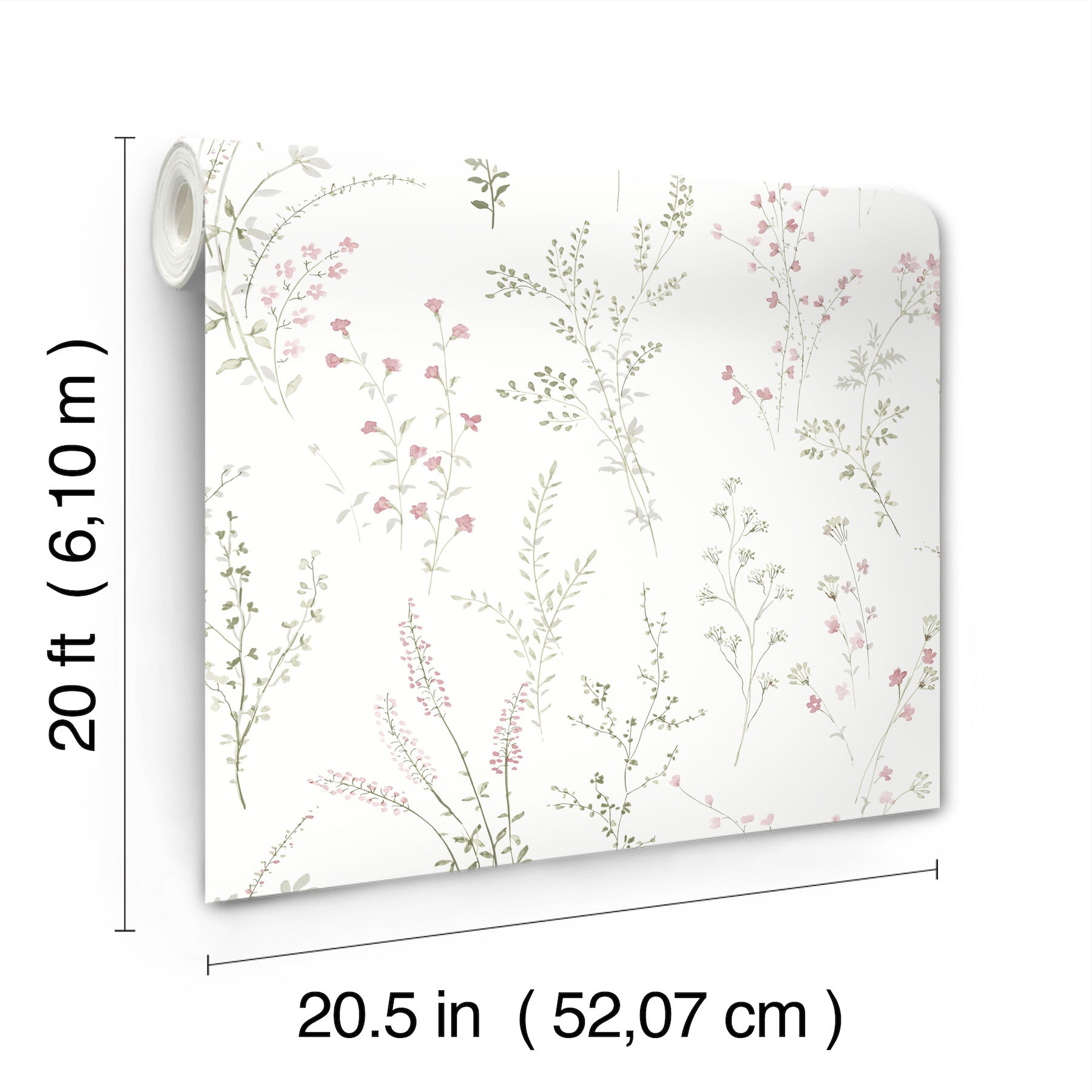 Use:A morning meadow provides the graceful, airy watercolor sketch of the Wildflower Sprigs pattern, shown in cany cane pink with emerald green. This Wildflower Sprigs Peel and Stick Wallpaper measures approximately 20.5 inches wide by 20 feet long, measuring approximately 34.2 square feet per roll. Painterly illustrations of meadows, gardens, and greenery.