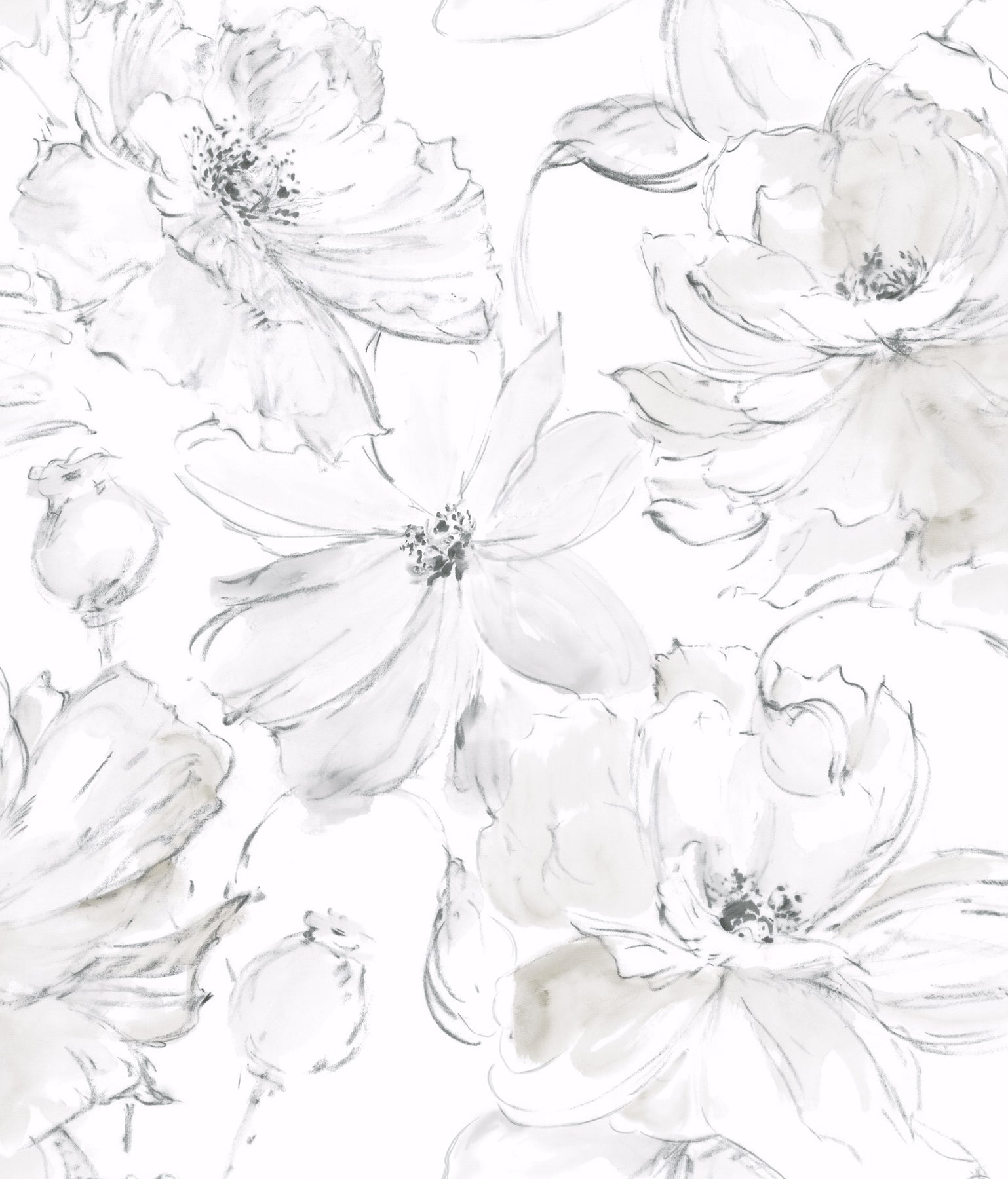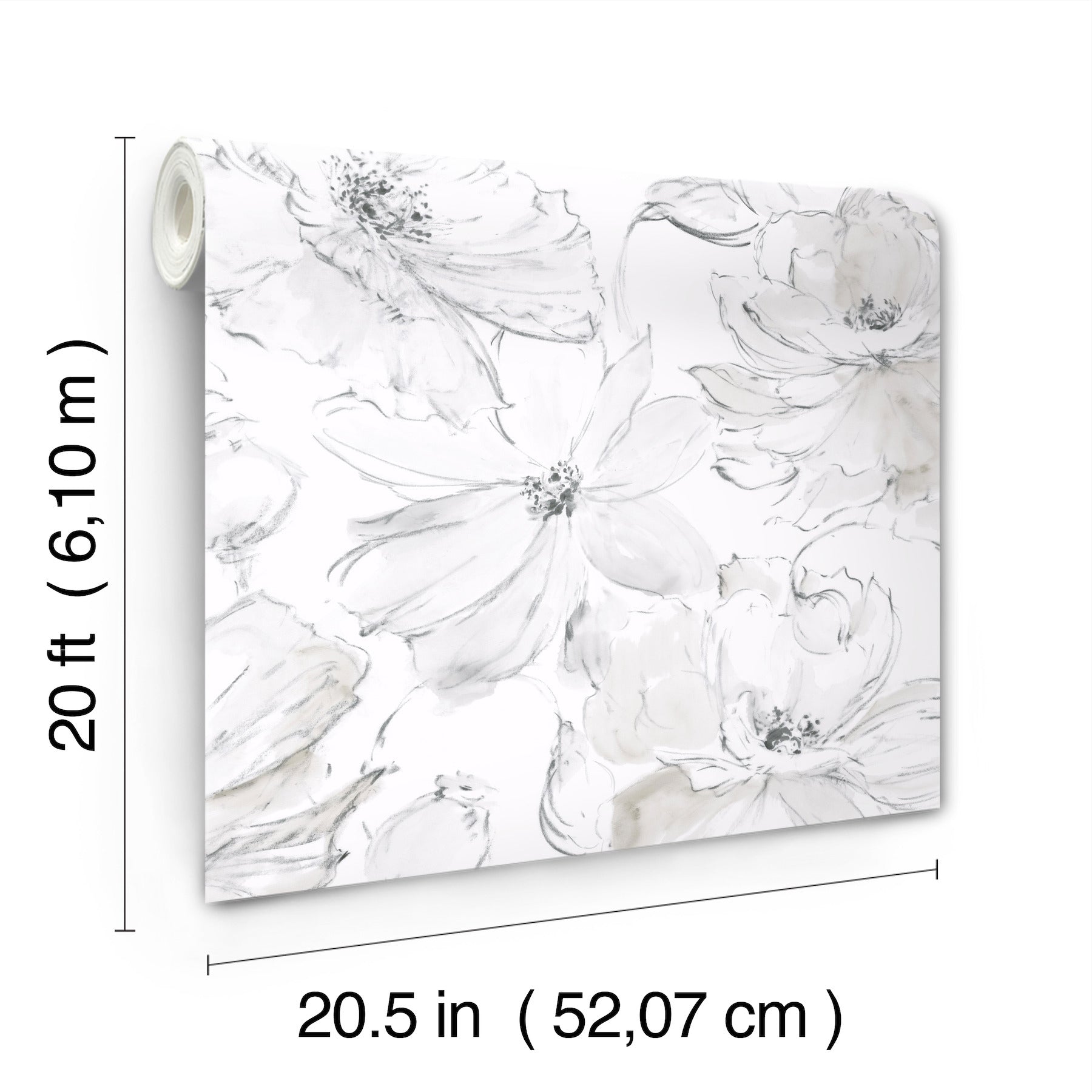 Use:Sketches from the garden display a lively toss of romantic heirloom blooms in pattern Floral Dreams, shown in graphite gray on white. This Floral Dreams Peel and Stick Wallpaper measures approximately 20.5 inches wide by 20 feet long, measuring approximately 34.2 square feet per roll. Painterly illustrations of meadows, gardens, and greenery.